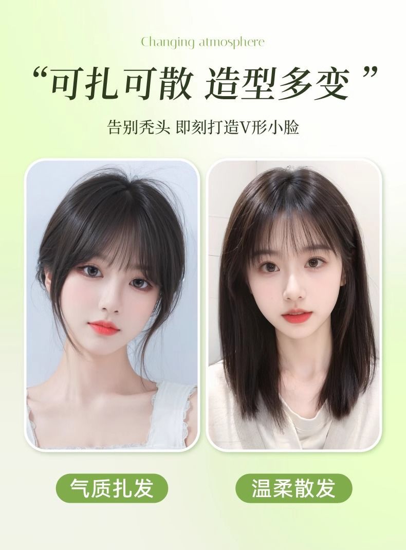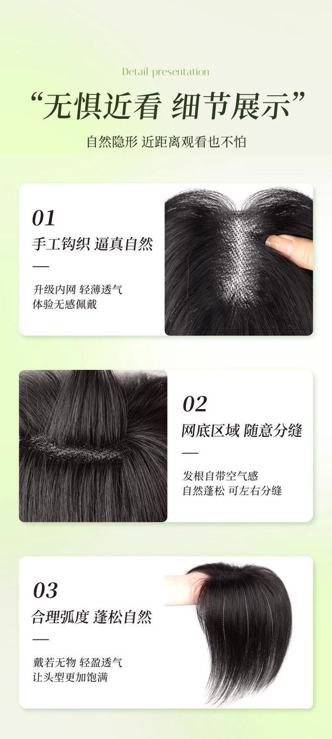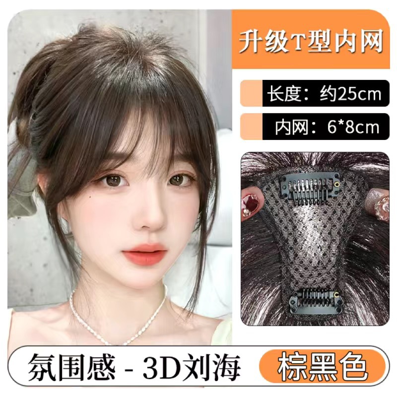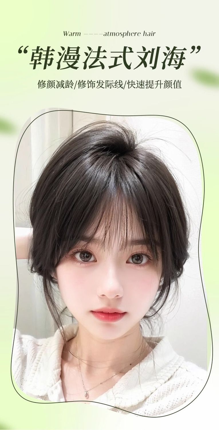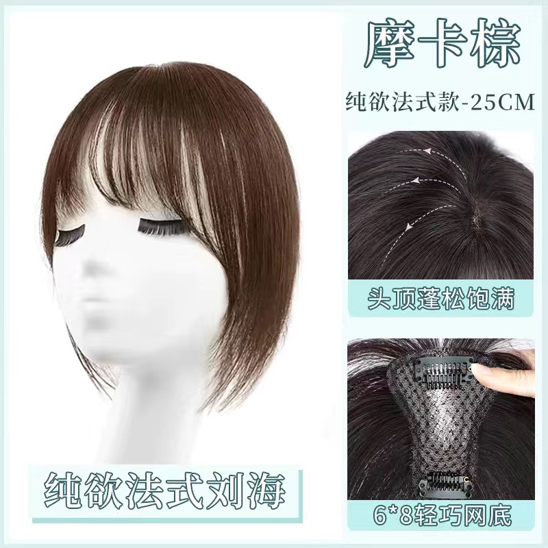 가발 여자 머리 재발행 추가 볼륨 푹신한 높은 두개골 탑 업그레이드 Fu Bag 그물 큰 영역 덮음 흰색 머리 가짜 Bangs스토어 가기