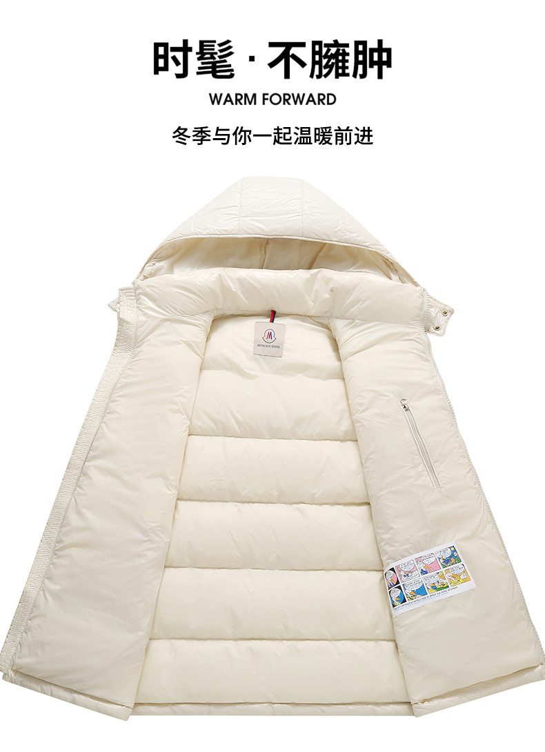 남성용 다운 재킷, 고급 다운 충전재, 2025 겨울 신상 남성복, 커플용 중간 길이 후드 트렌디 브랜드 보온 재킷스토어 가기