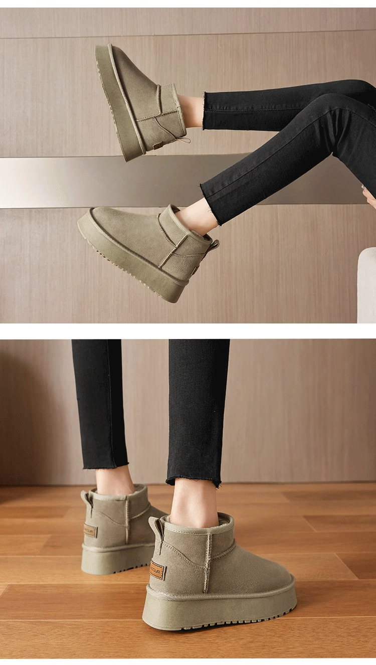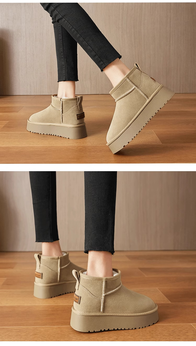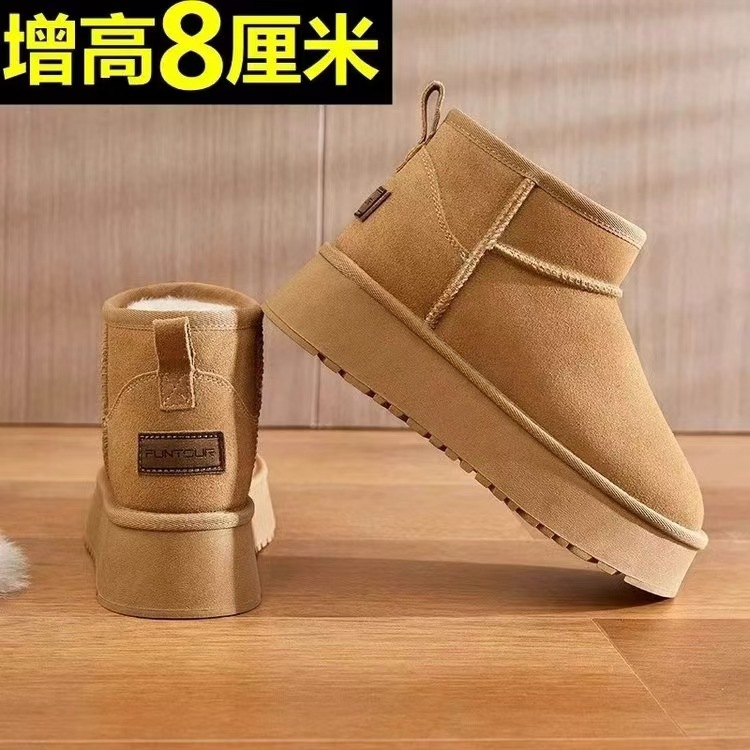 두꺼운 바닥 스노우 부츠 여성의 겨울 2024 기모 두꺼운 방수 머핀 짧은 튜브 증가 된면 신발스토어 가기