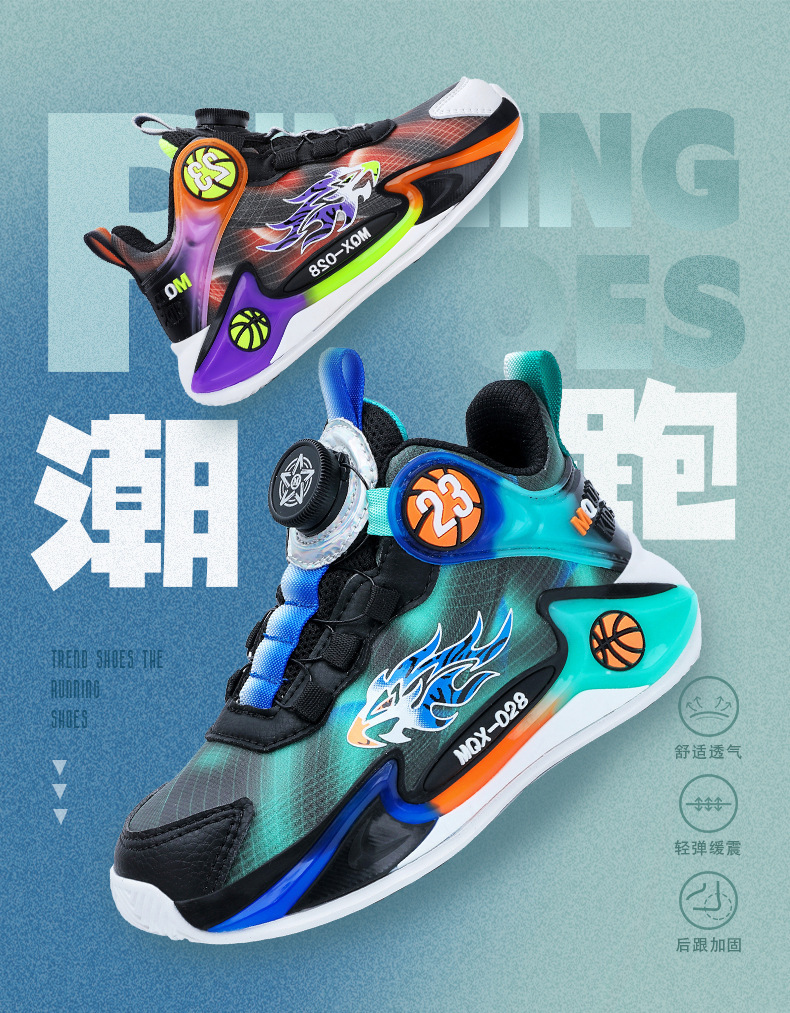 어린이 농구 신발 회전 버튼 운동화 봄과 가을 2023 소년을위한 새로운 가죽 통기성 운동화스토어 가기