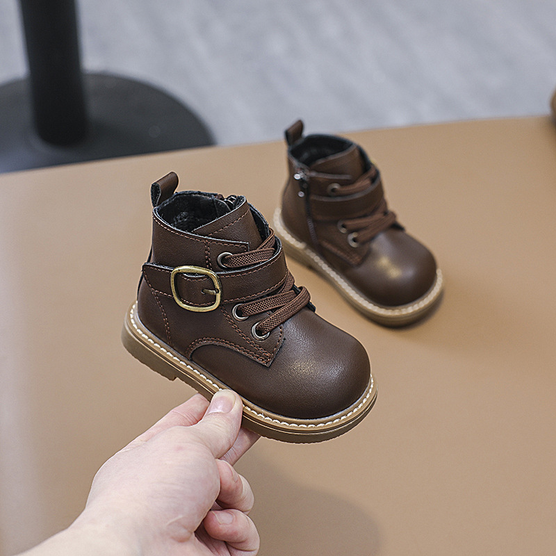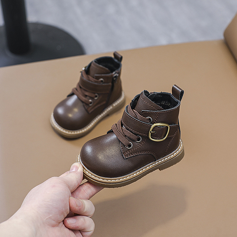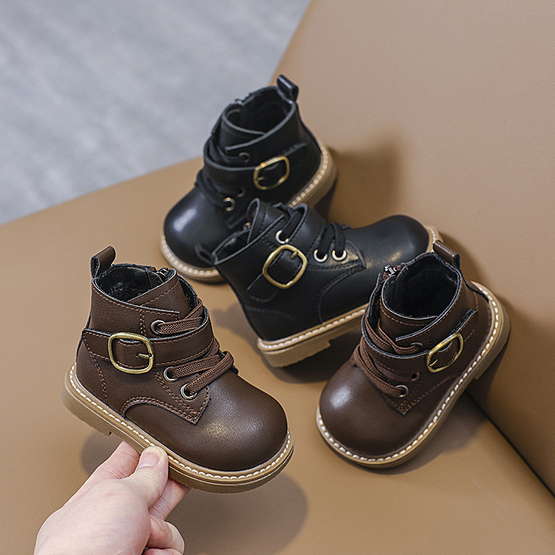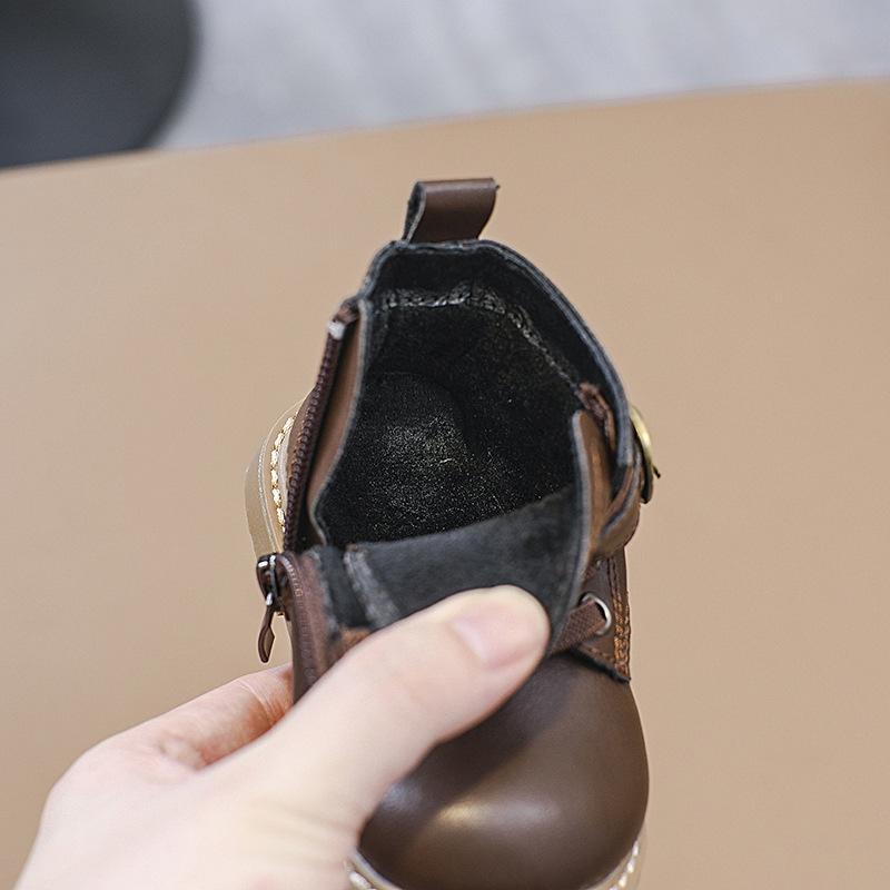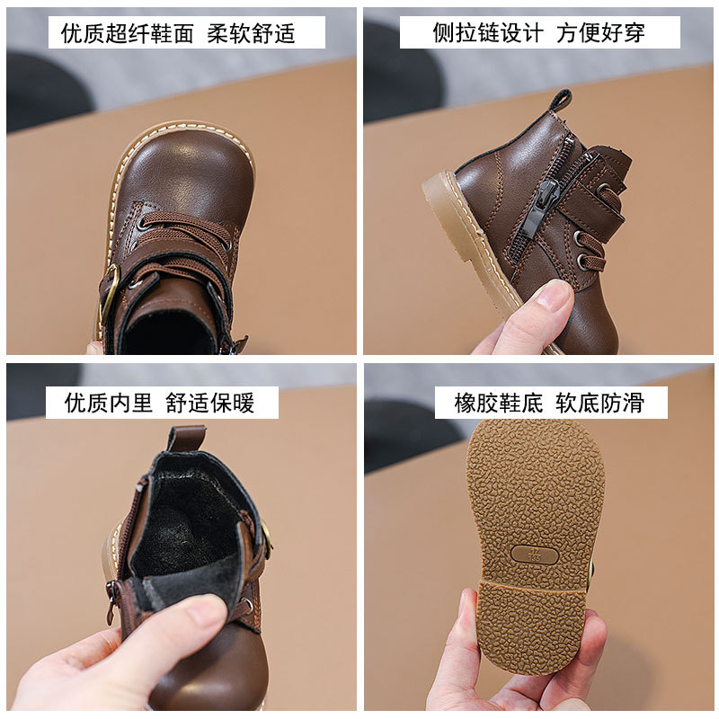 겨울 어린이 마틴 부츠 레트로 클래식 소녀 부츠 어린이 편안한 부드러운 바닥 소년 금속 사이드 지퍼 가죽 부츠스토어 가기