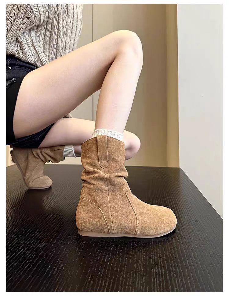 니치 레트로 힙 부츠 여성 2024 새로운 인터넷 인기 플랫 하단 작은 짧은 부츠 인기 웨스턴 데님 마틴 부츠