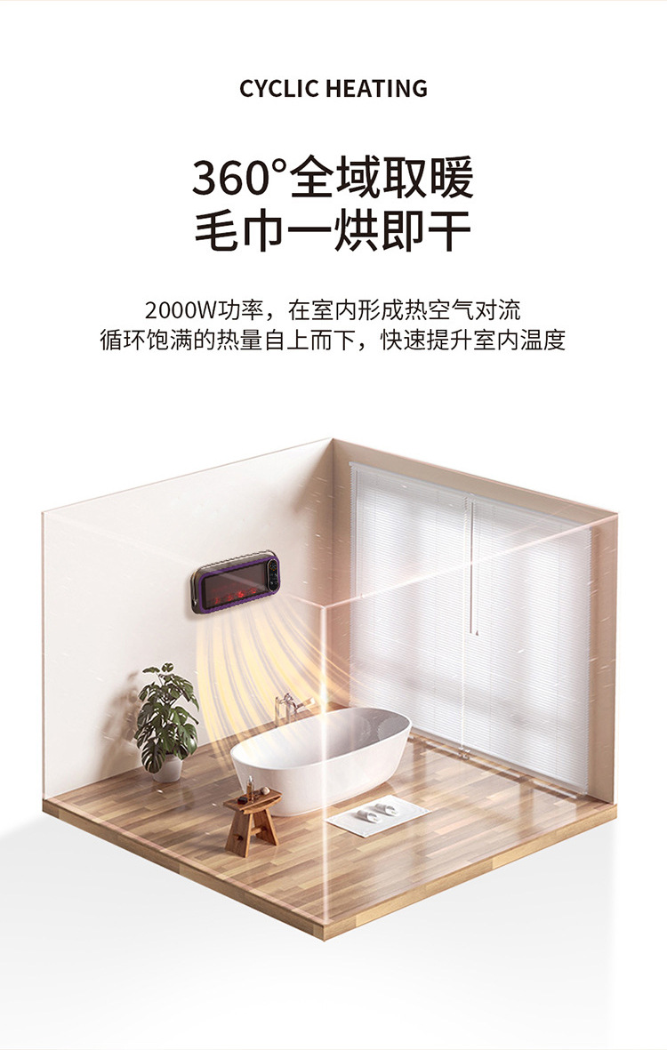 새로운 음성 히터 욕실 히터 가정용 에너지 절약 작은 태양 속도 난방 벽에 장착 된 전기 히터 UV 살균