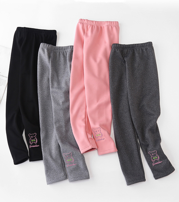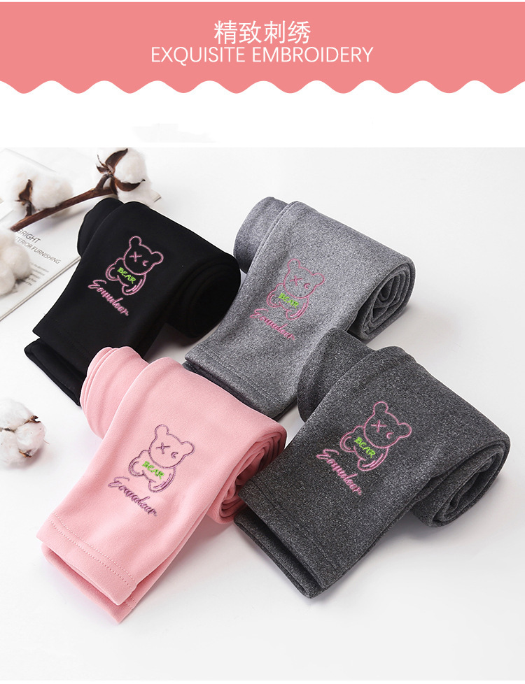 女童秋冬加绒加厚打底裤宝宝刺绣保暖长裤中小童潮范卡通棉裤批发