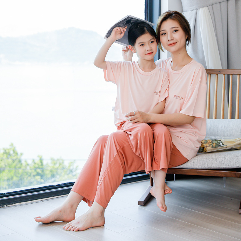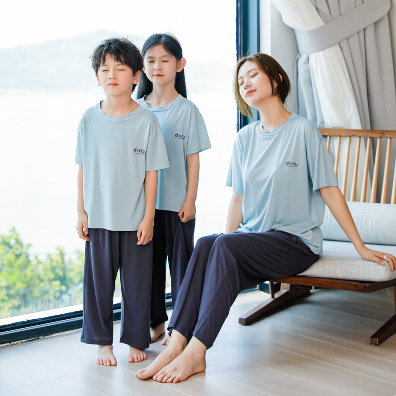 24 부모-자식 의류 모달 아이스 반팔 양복 에어컨 가정복 중대형 소년 소녀 티셔츠 스트레이트 팬츠 파자마스토어 가기
