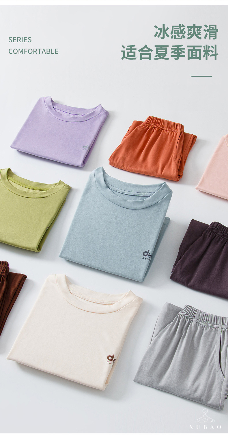 24 부모-자식 의류 모달 아이스 반팔 양복 에어컨 가정복 중대형 소년 소녀 티셔츠 스트레이트 팬츠 파자마