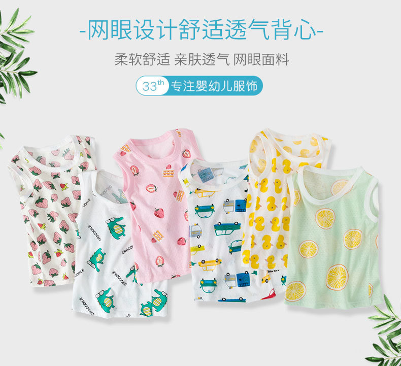 24 여름 어린이 메쉬 조끼 얇은 한국 아기 만화 면 중소 어린이 소년 소녀 민소매 탑 베이스스토어 가기