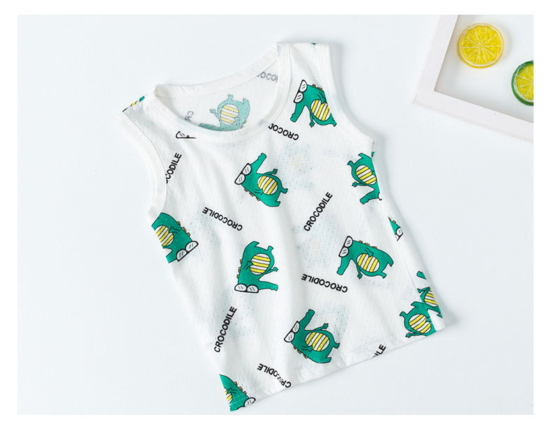 24 여름 어린이 메쉬 조끼 얇은 한국 아기 만화 면 중소 어린이 소년 소녀 민소매 탑 베이스