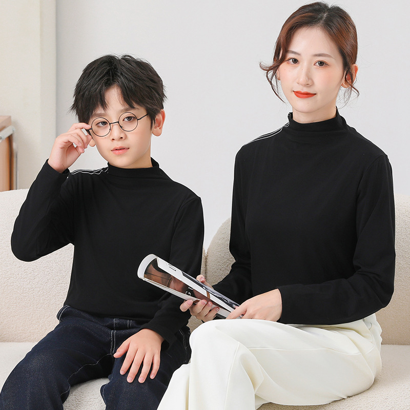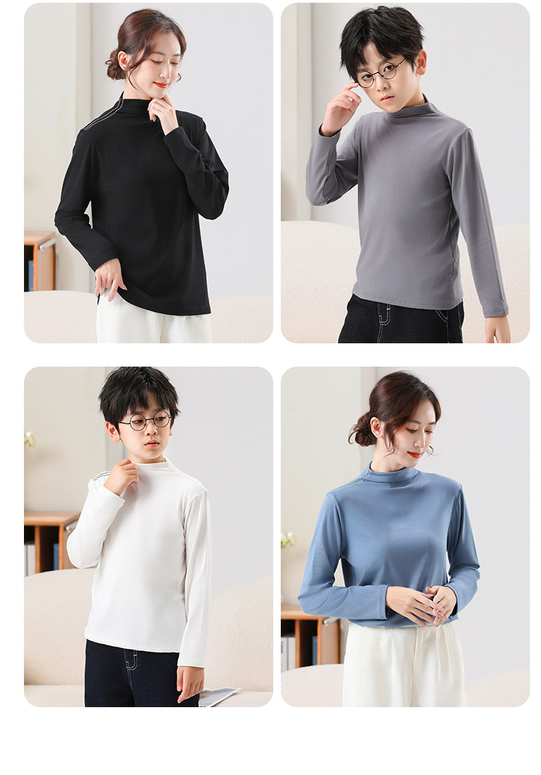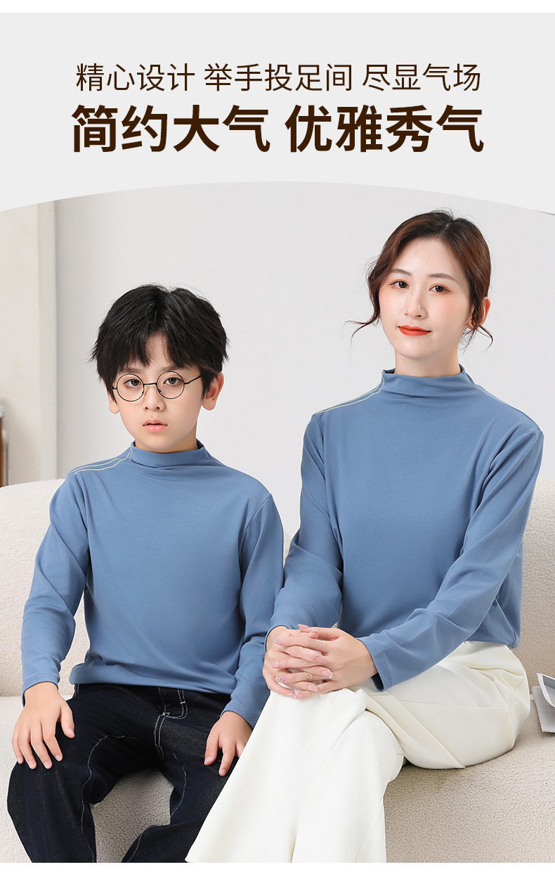 가을과 겨울 부모-아동베이스 셔츠 모달 샌딩 기모 소년 소녀를위한 두꺼운 따뜻한 미드 칼라 긴팔 티셔츠