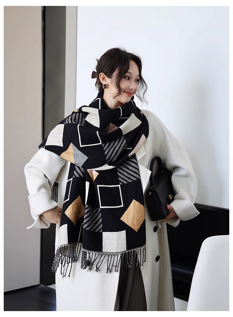 2024 스카프 여자 겨울 올 매치 양면 격자 무늬 캐시미어 패션 두꺼운 에어컨 룸 대형 목도리 이중 사용 학생스토어 가기