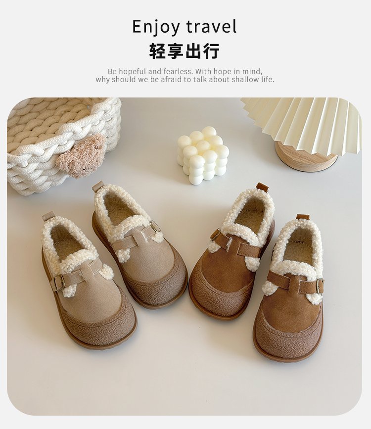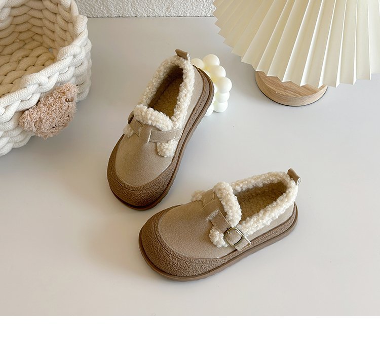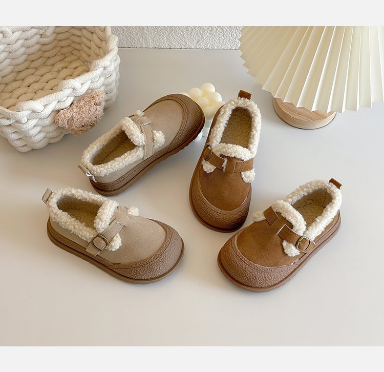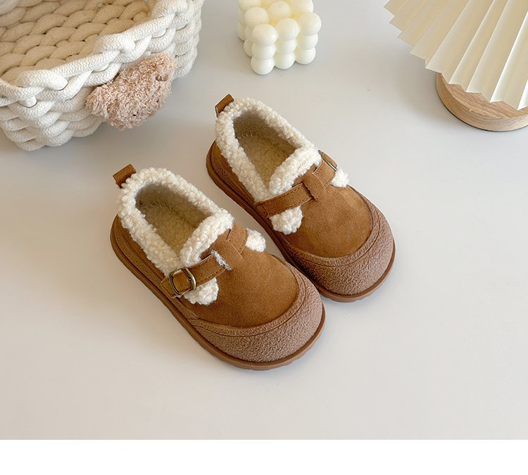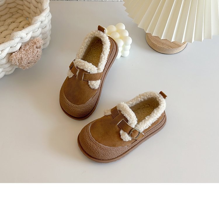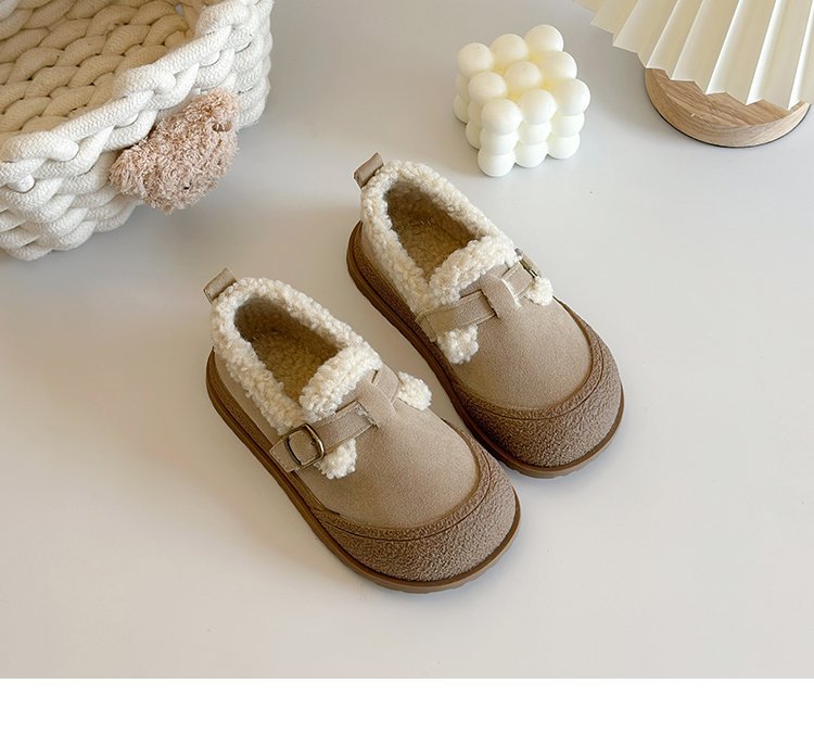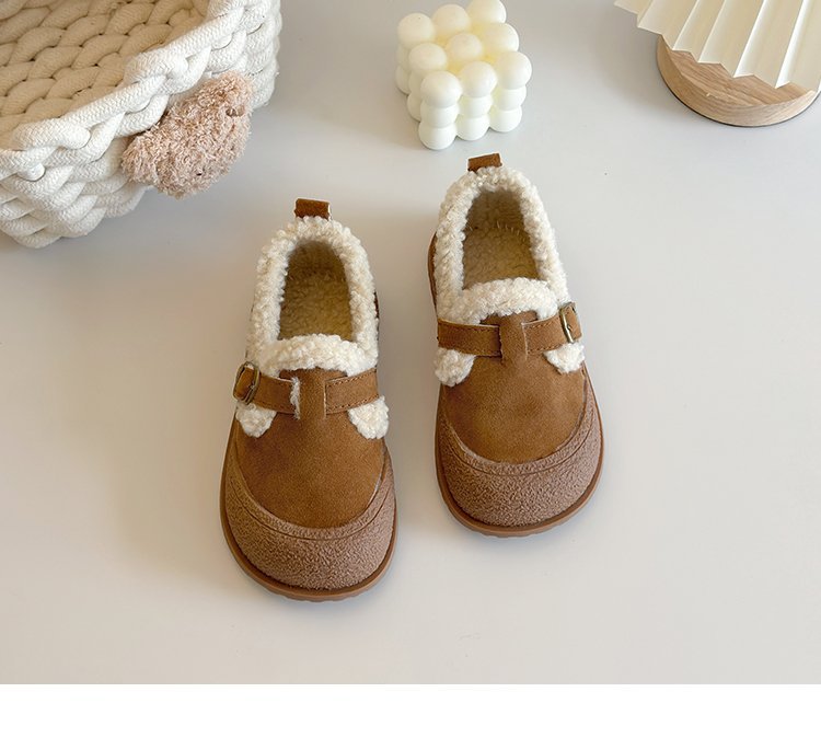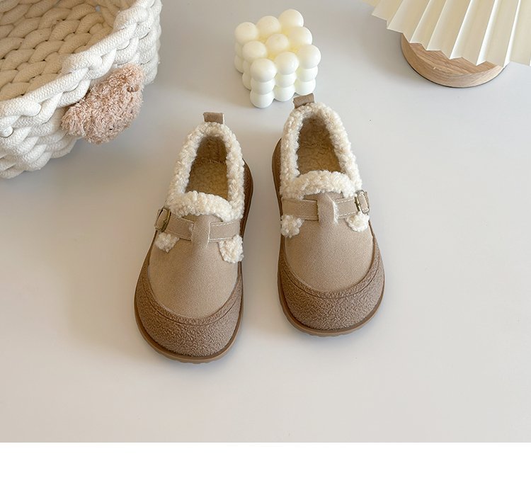 한국 스타일 소녀 벨벳 따뜻한 모피 신발 2025 가을, 겨울 새로운 부드러운 밑창 어린이 Boken 신발 소년 비니 신발