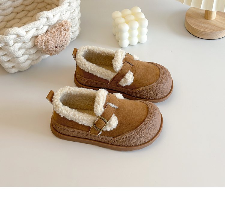 한국 스타일 소녀 벨벳 따뜻한 모피 신발 2025 가을, 겨울 새로운 부드러운 밑창 어린이 Boken 신발 소년 비니 신발스토어 가기