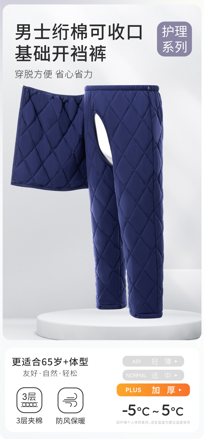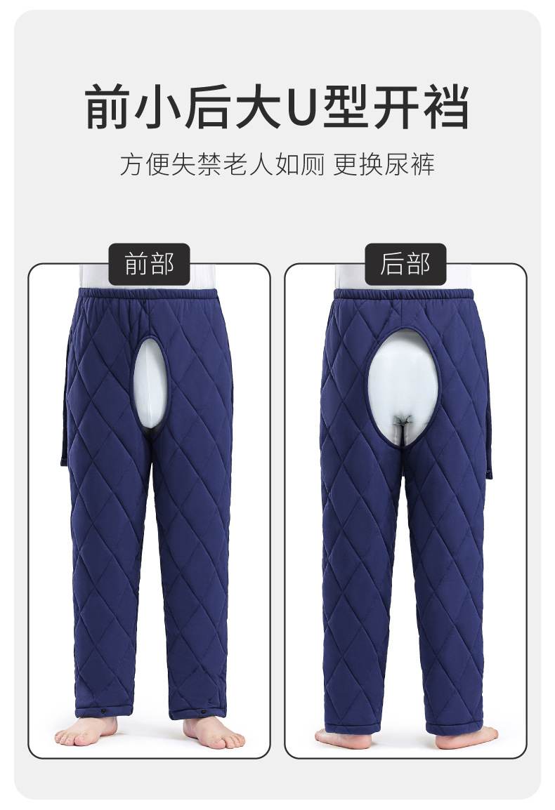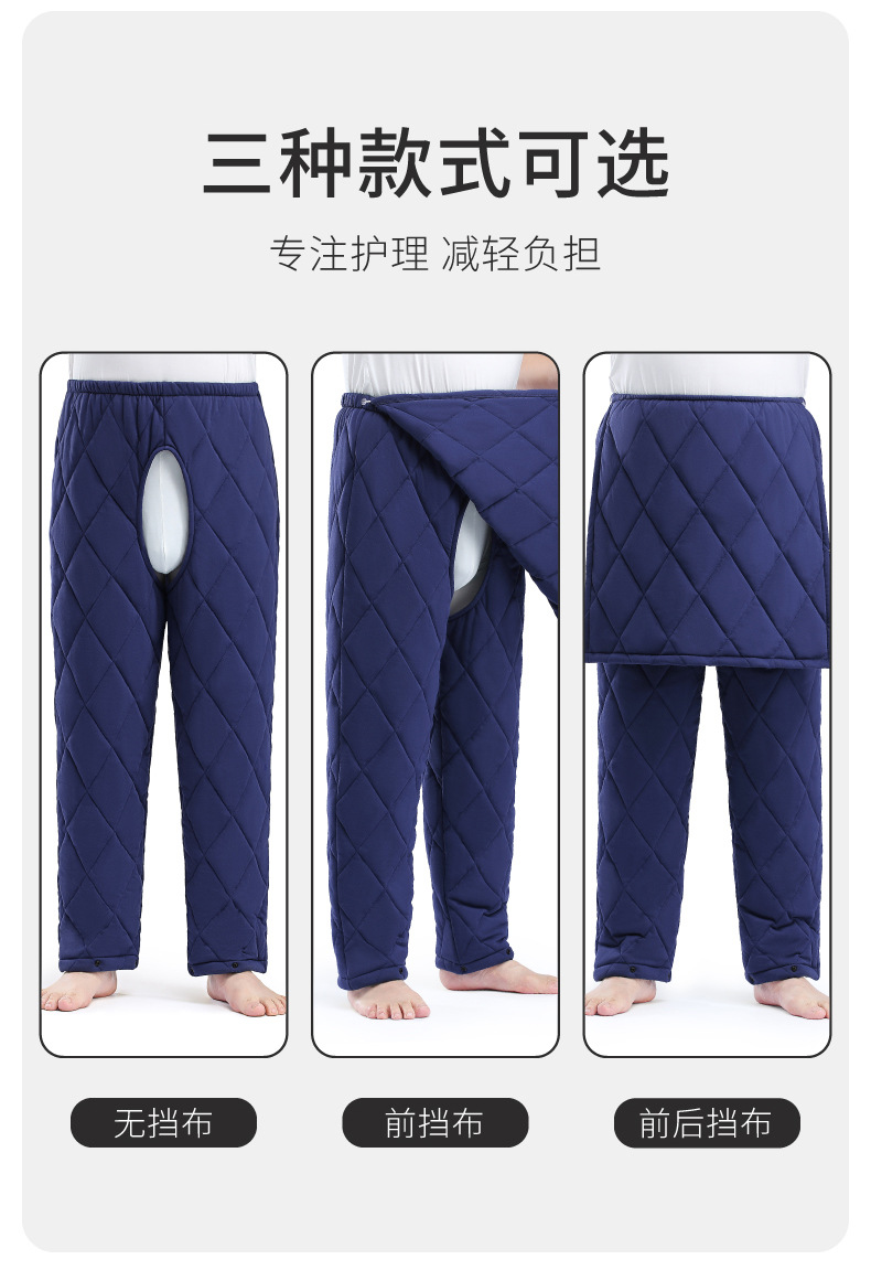 봄 직조 가을과 겨울 두꺼운 면화 패딩 성인 오픈 가랑이 바지 수술 후 환자 복구 쉽게 착용 할 수있는 케어 바지 남성 파자마 바지