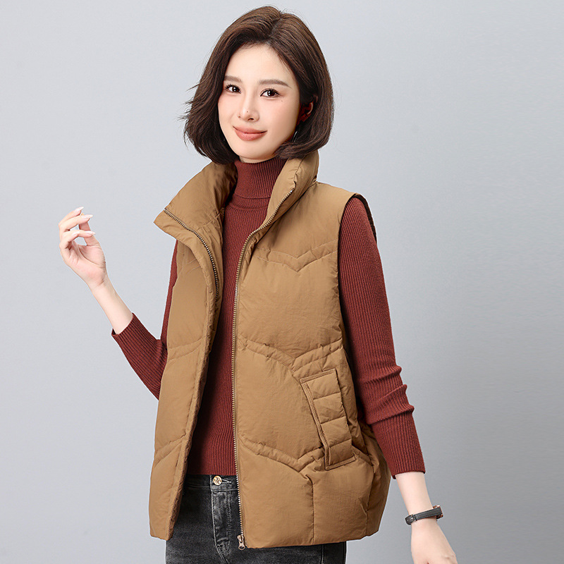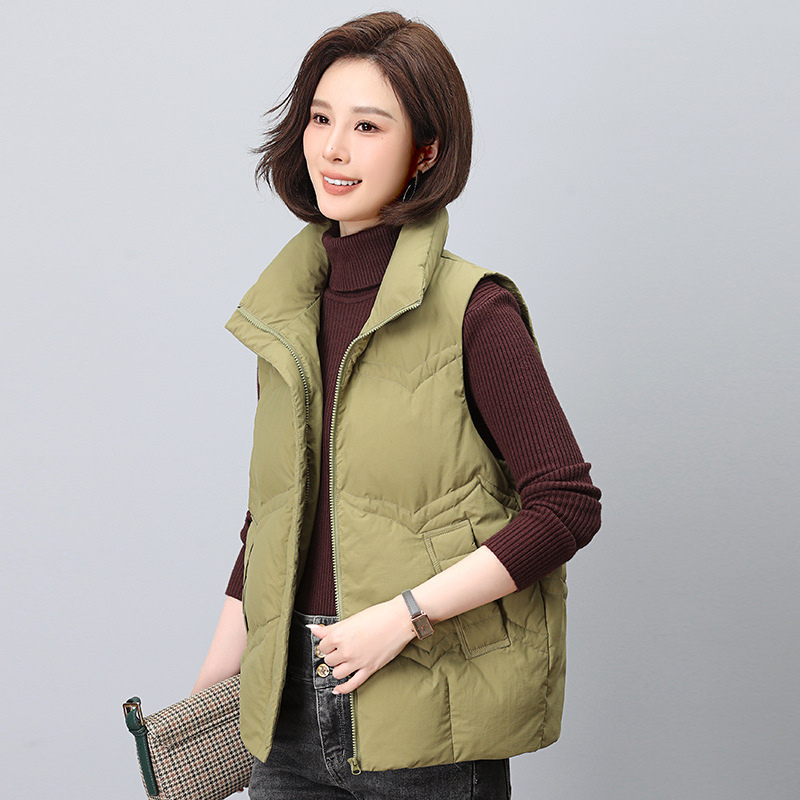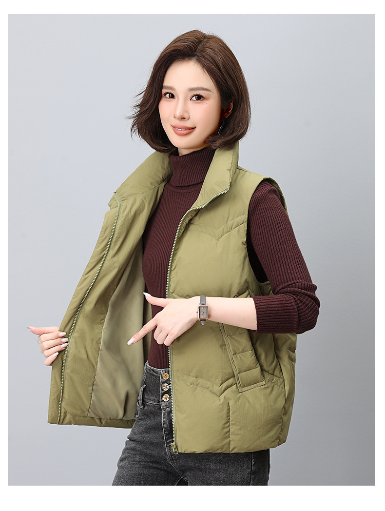 어머니 다운 조끼 여성 짧은 2024 새로운 가을과 겨울 경량 외모 흰 오리 다운 조끼 뜨거운 조끼스토어 가기