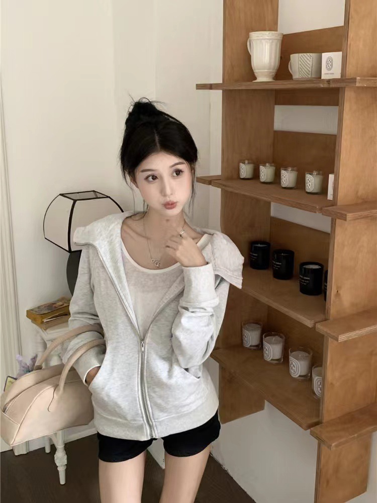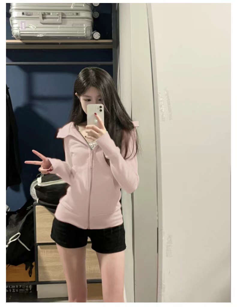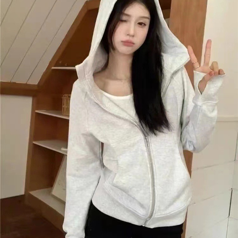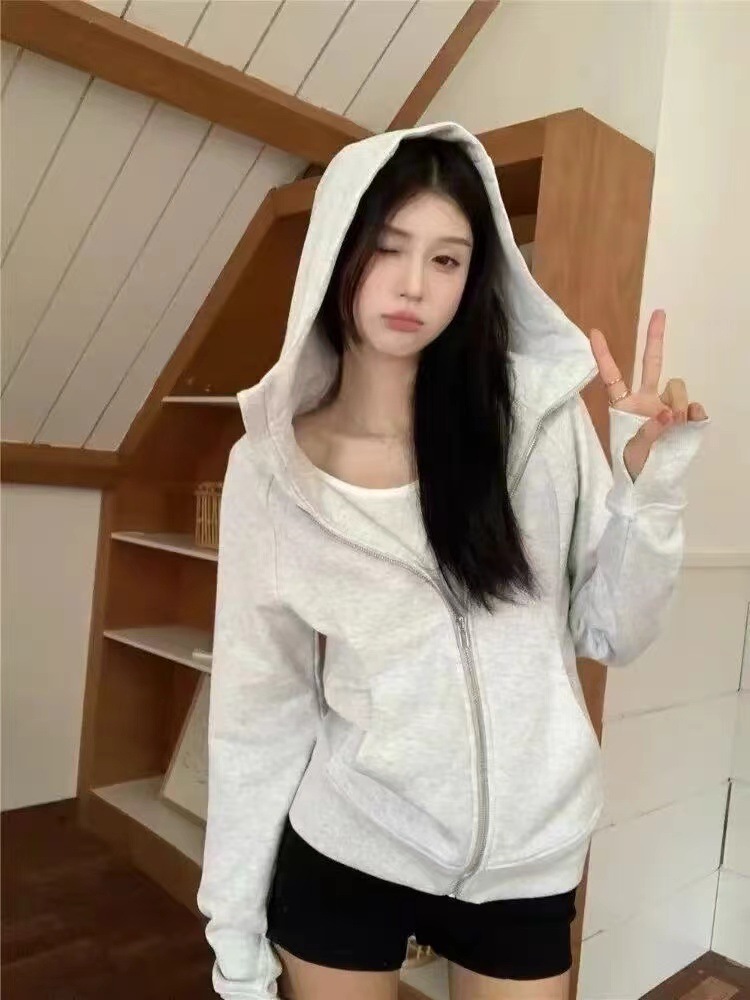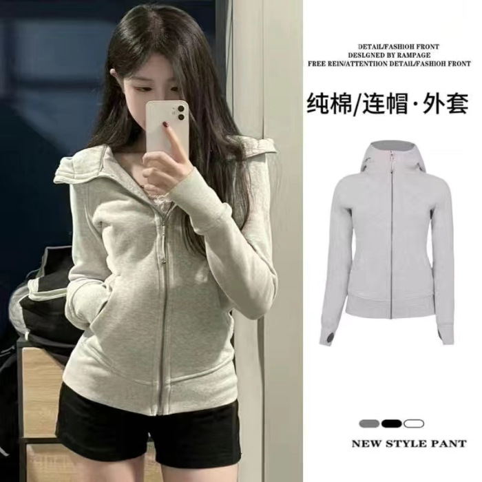 국경을 넘나 드는 미국 지퍼 슬림 핏 후드 카디건 요가 스포츠 스웨터 재킷 여성 바깥 쪽 꽉 찬 허리 육체 덮개 탑 착용스토어 가기