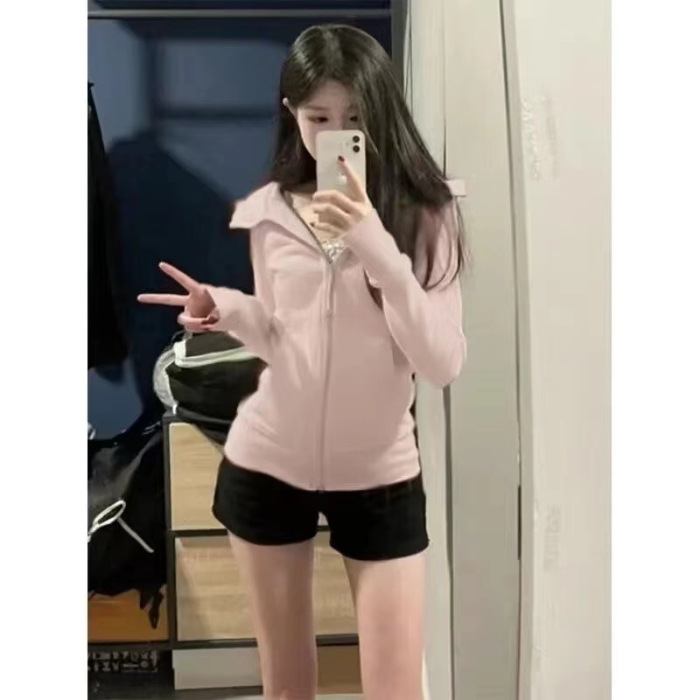 국경을 넘나 드는 미국 지퍼 슬림 핏 후드 카디건 요가 스포츠 스웨터 재킷 여성 바깥 쪽 꽉 찬 허리 육체 덮개 탑 착용