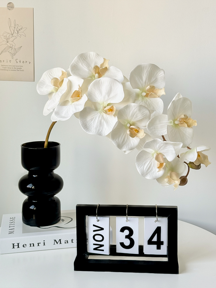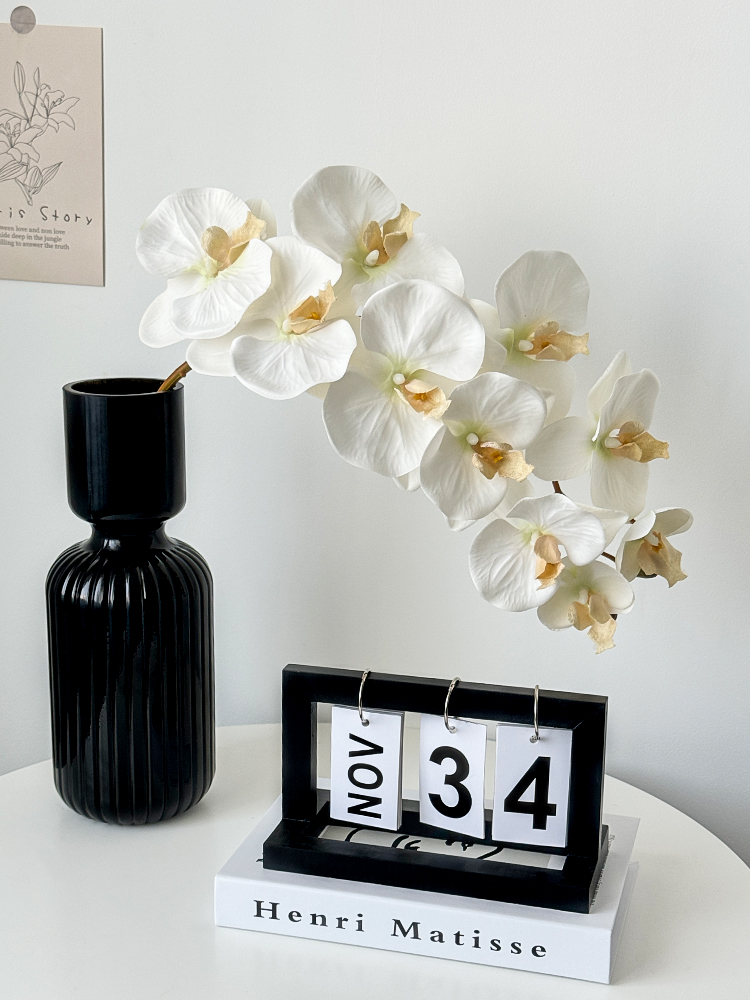 • 검은색 줄무늬 대형 꽃병 + 흰색 호접란 + 검은색 영구 달력 원목 모델