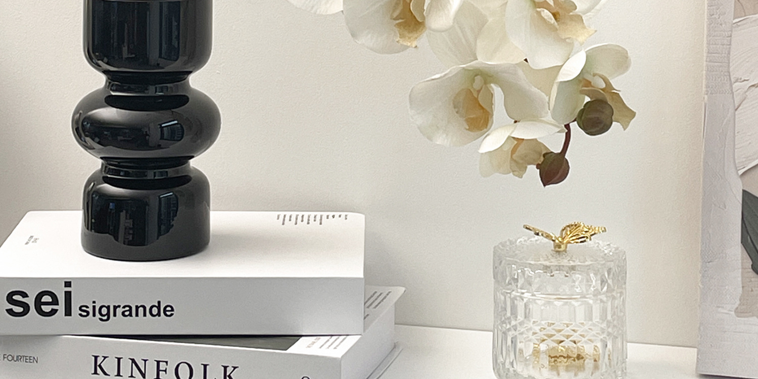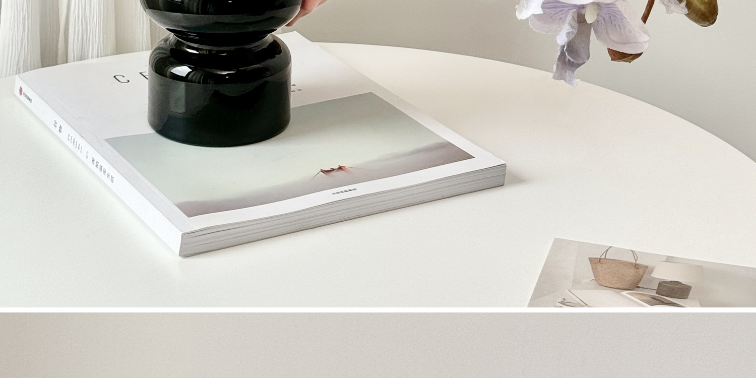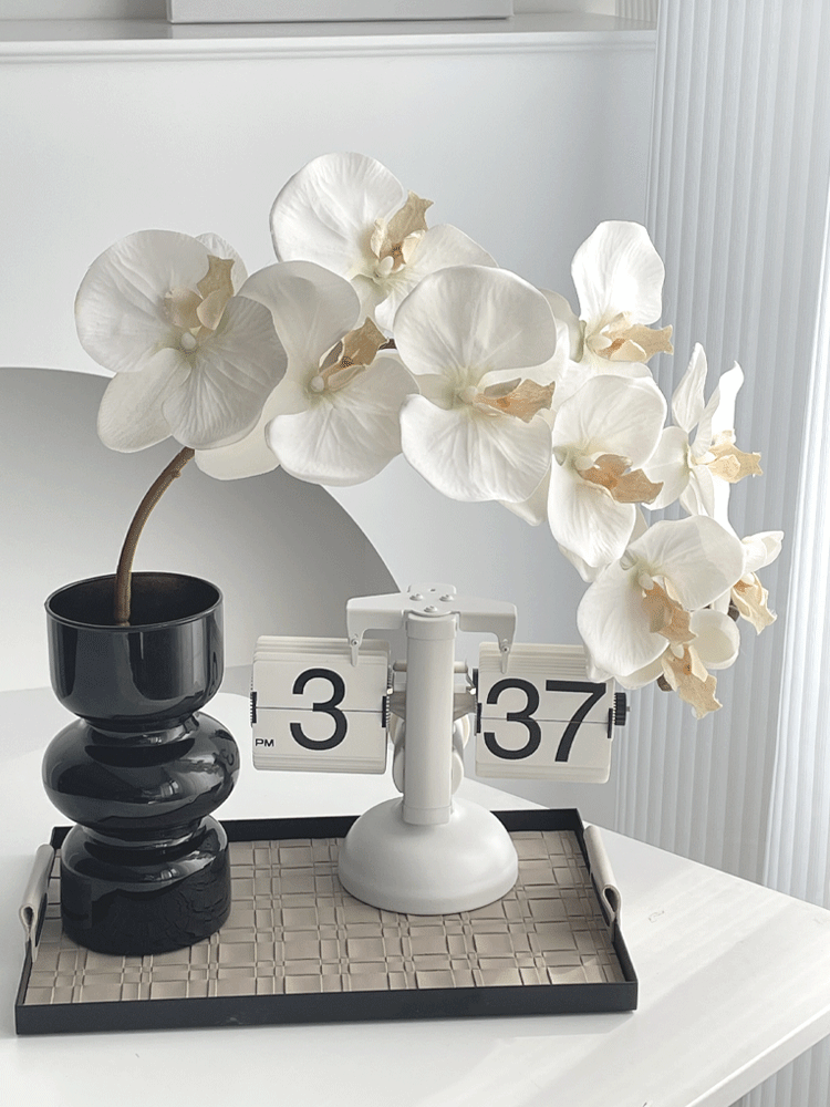 • 검은색 삼파 꽃병 + 흰색 호접란 + 사각 가죽 트레이 + 페이지를 넘기는 흰색 시계