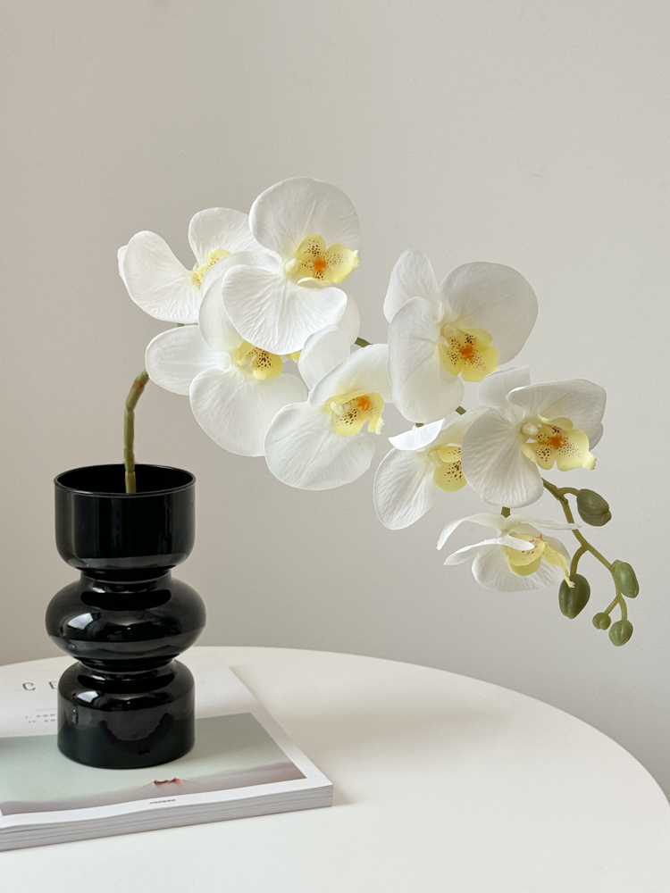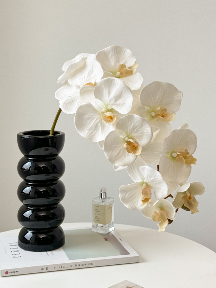• 검은 대나무 꽃병 + 호접란 10개(달빛 흰색) 1개