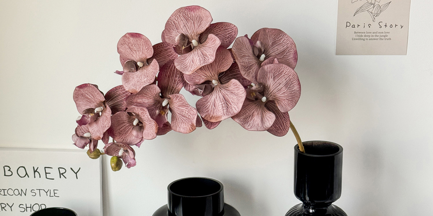 • 검은 대나무 꽃병 + 호접란 10개(분홍색과 보라색) 1개