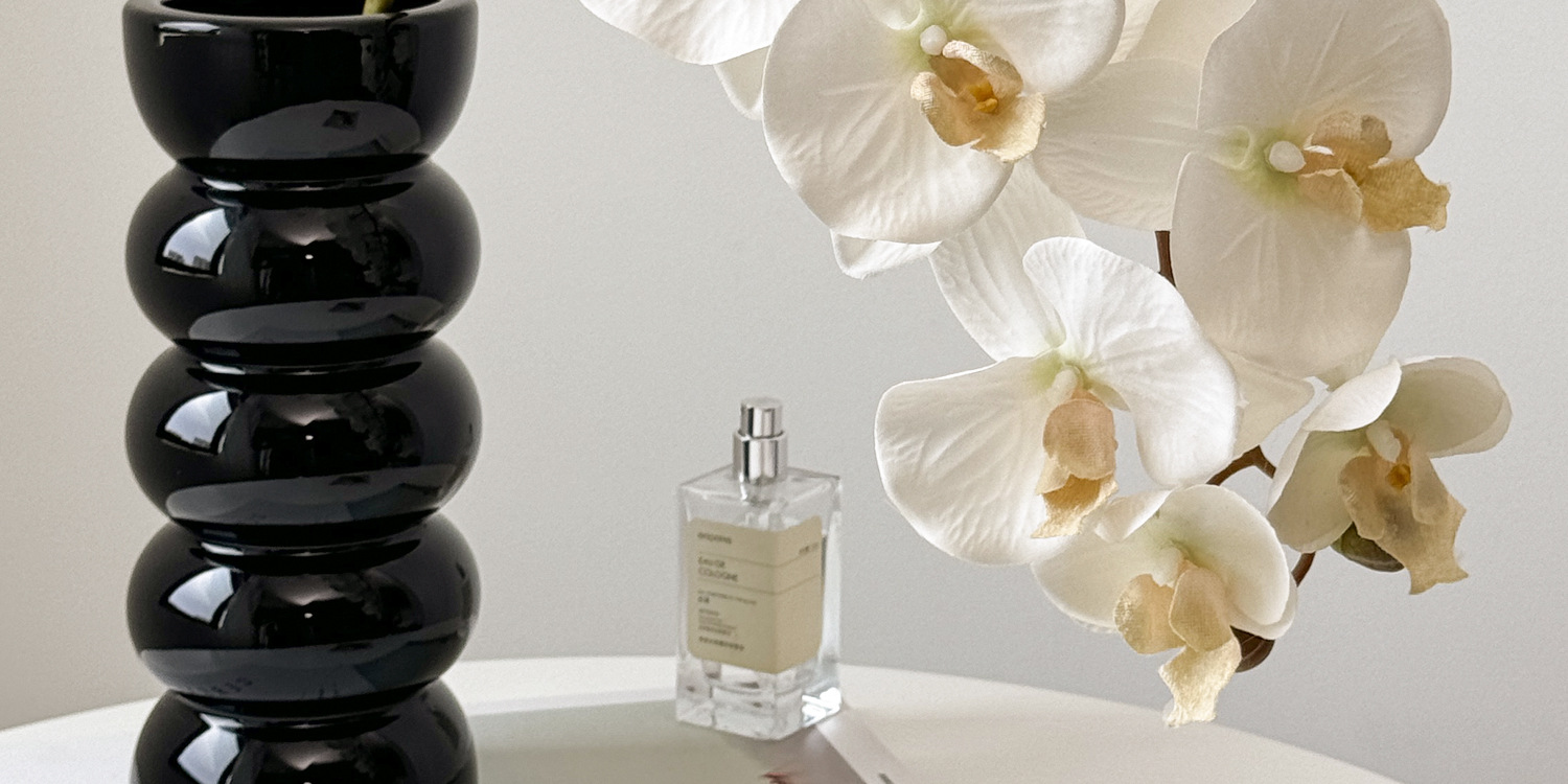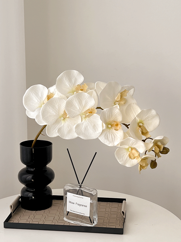 • 검은색 삼파 꽃병 + 흰색 호접란 + 사각 가죽 트레이 + 아로마테라피