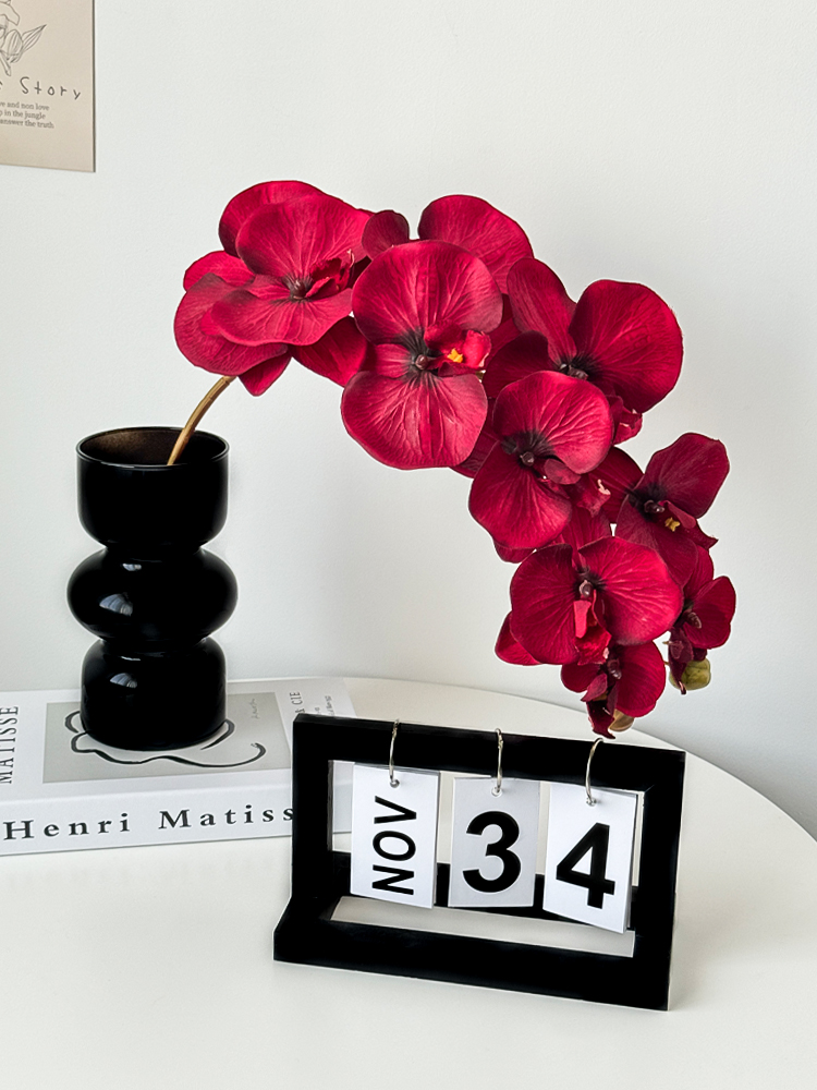 • 검은색 삼파 꽃병 + 붉은 호접란 + 검은색 퍼페추얼 캘린더 원목 모델