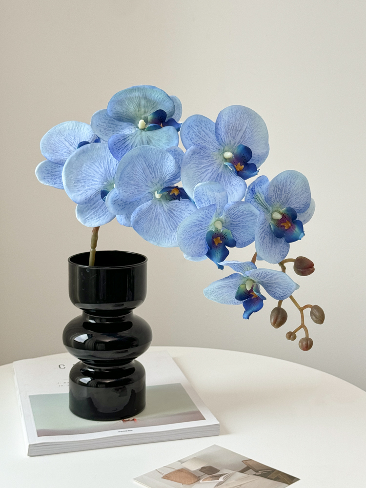 • 검은색 삼파 꽃병 + 호접란 8개(파란색) 1개