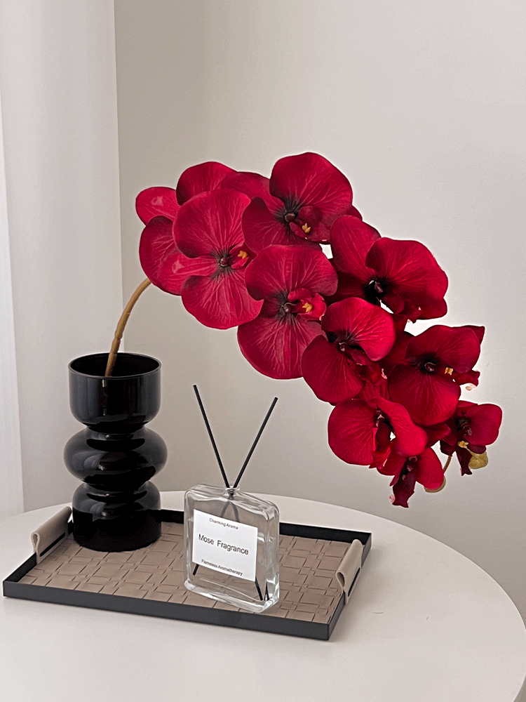 • 검은색 삼파 꽃병 + 붉은 호접란 + 사각 가죽 트레이 + 아로마테라피