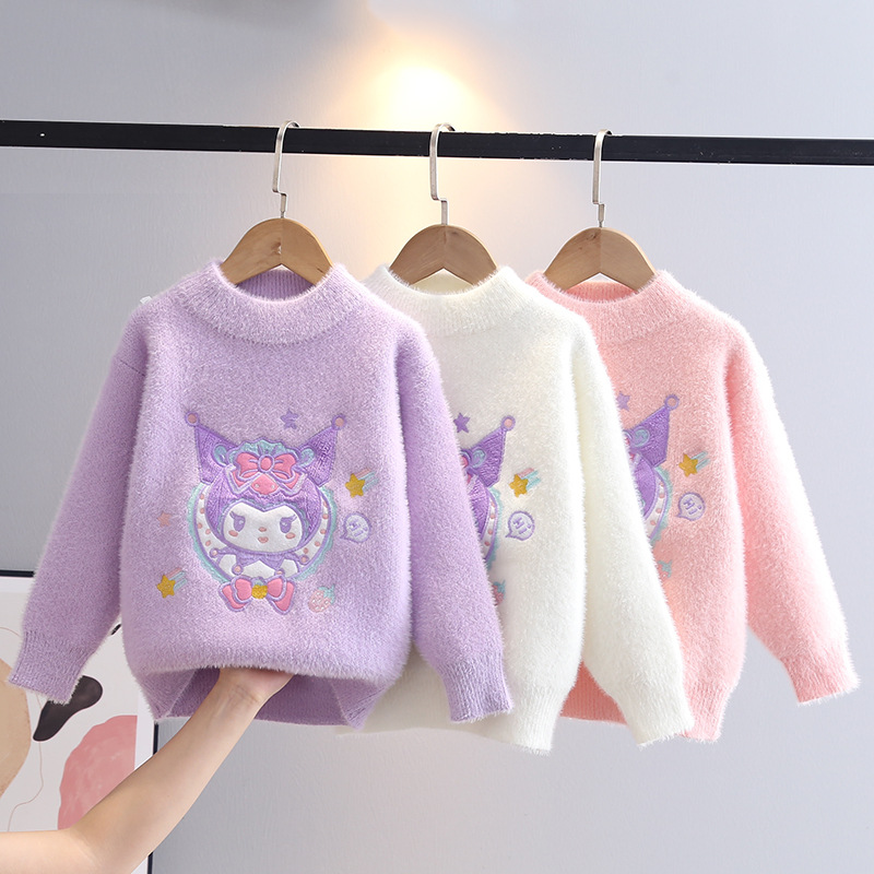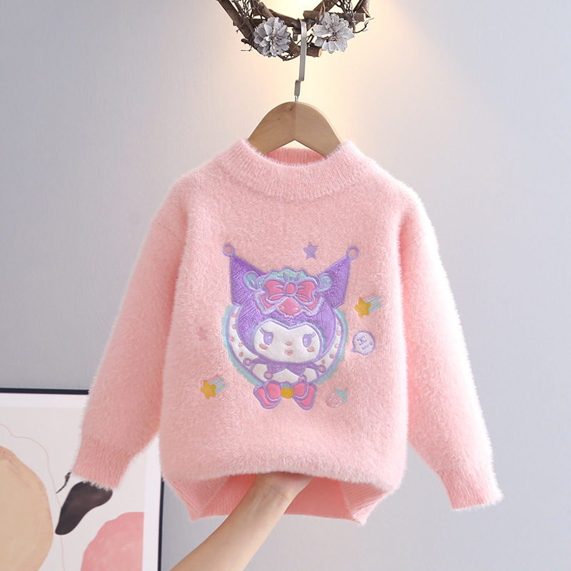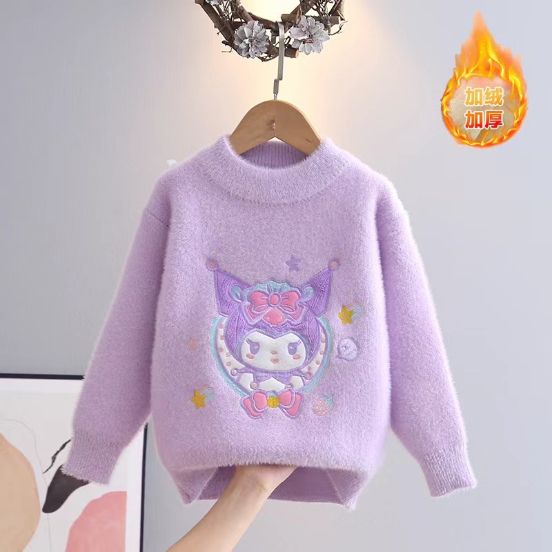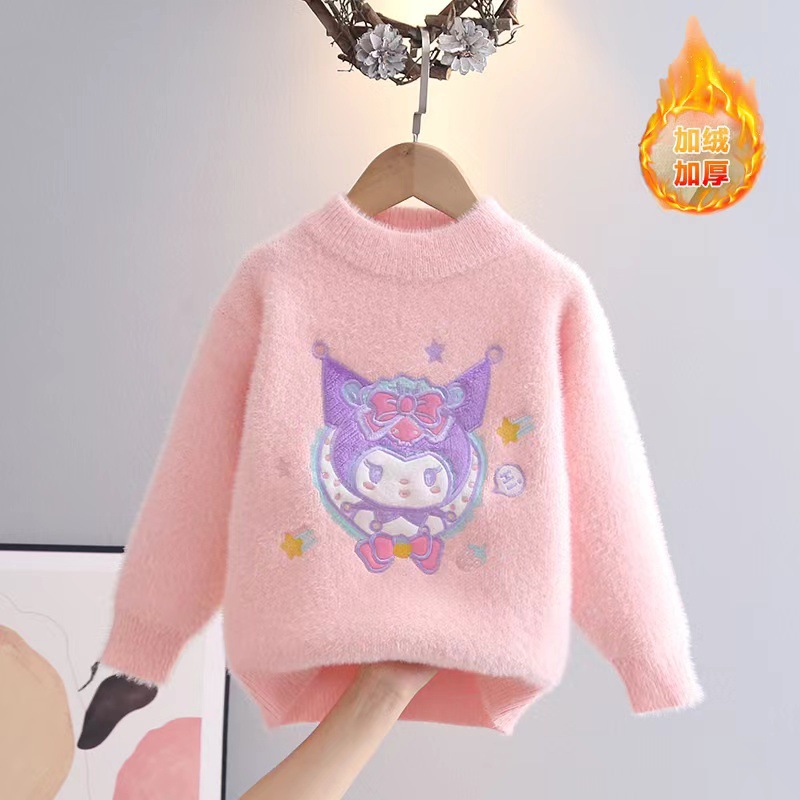 어린이 착용 여아 스웨터 풀오버 소녀 모조 밍크 벨벳 가을과 겨울 기모 두꺼운 따뜻한 아기 니트 베이스 셔츠