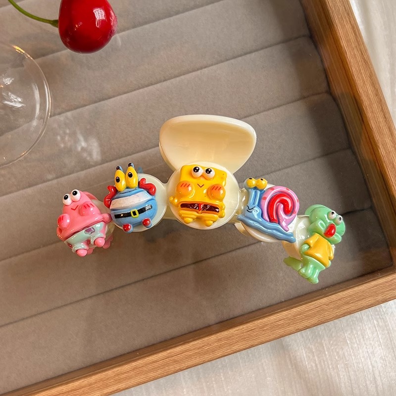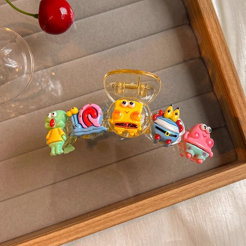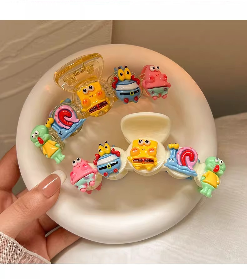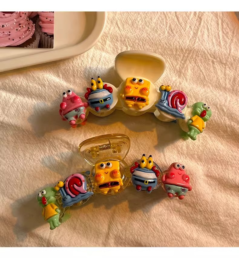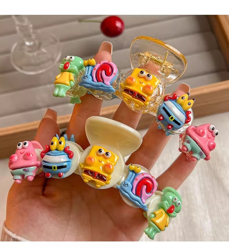 스폰지 밥 패티 랩 클립 여성 달콤한 귀여운 만화 헤어핀 다시 머리 클립 헤드웨어 디스크 헤어 상어 클립스토어 가기