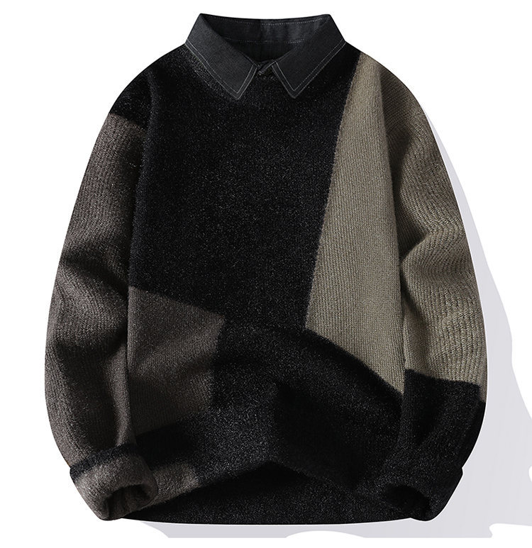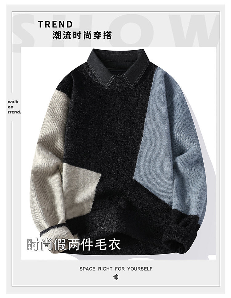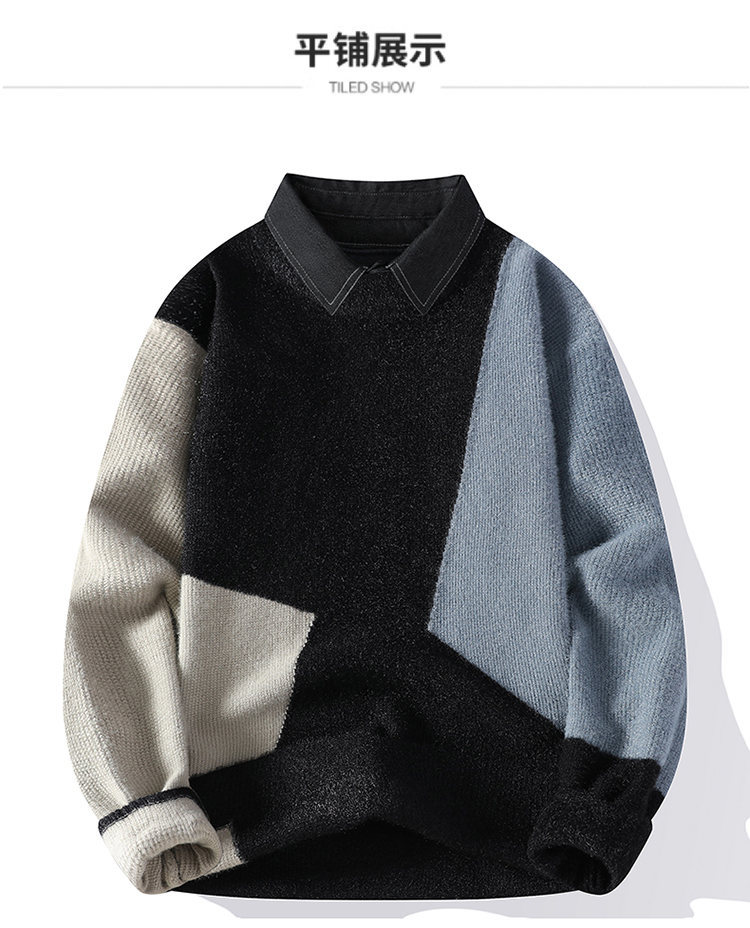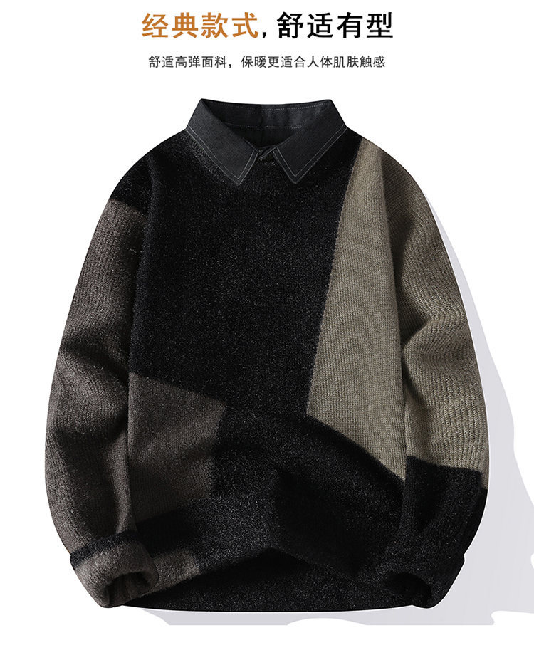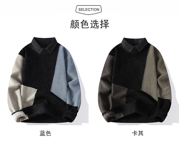 국경 간 AliExpress 세대 남성 스웨터 스웨터 2024 가을과 겨울 새로운 패션 셔츠 칼라 스웨터 남성스토어 가기