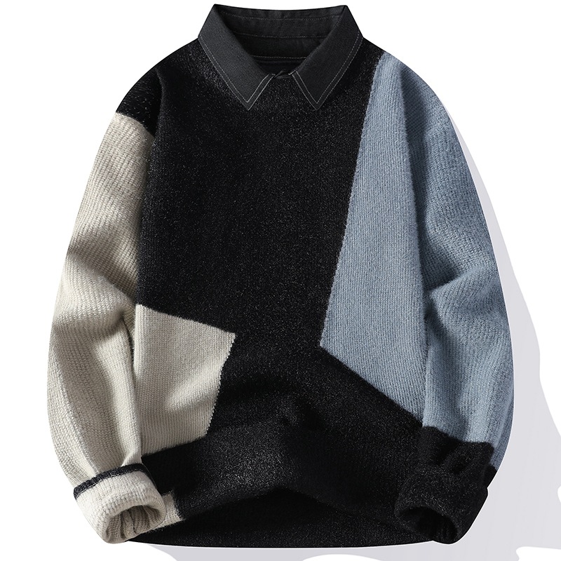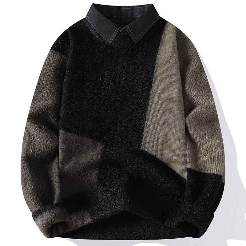 국경 간 AliExpress 세대 남성 스웨터 스웨터 2024 가을과 겨울 새로운 패션 셔츠 칼라 스웨터 남성