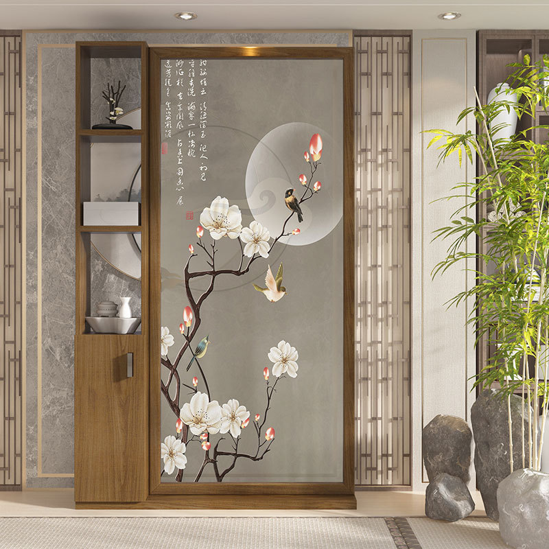 신중국풍 원목 스크린 칸막이 거실 침실 현관 수납장 가정용 입구 가림막 나무 스크린스토어 가기