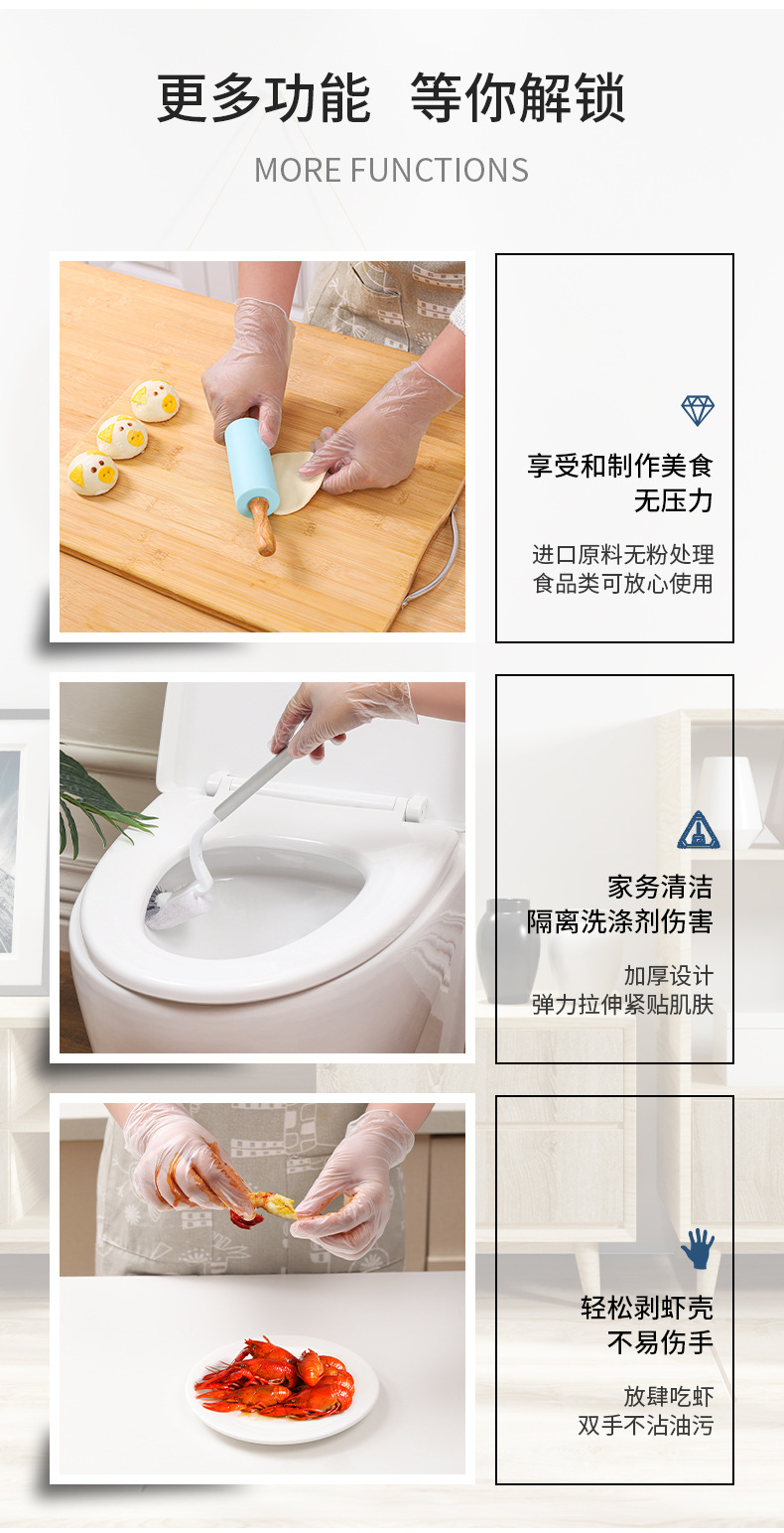 일회용 PVC 장갑 두꺼운 식품 등급 라텍스 장갑 투명 방진 뷰티 장갑 주방 베이킹 장갑