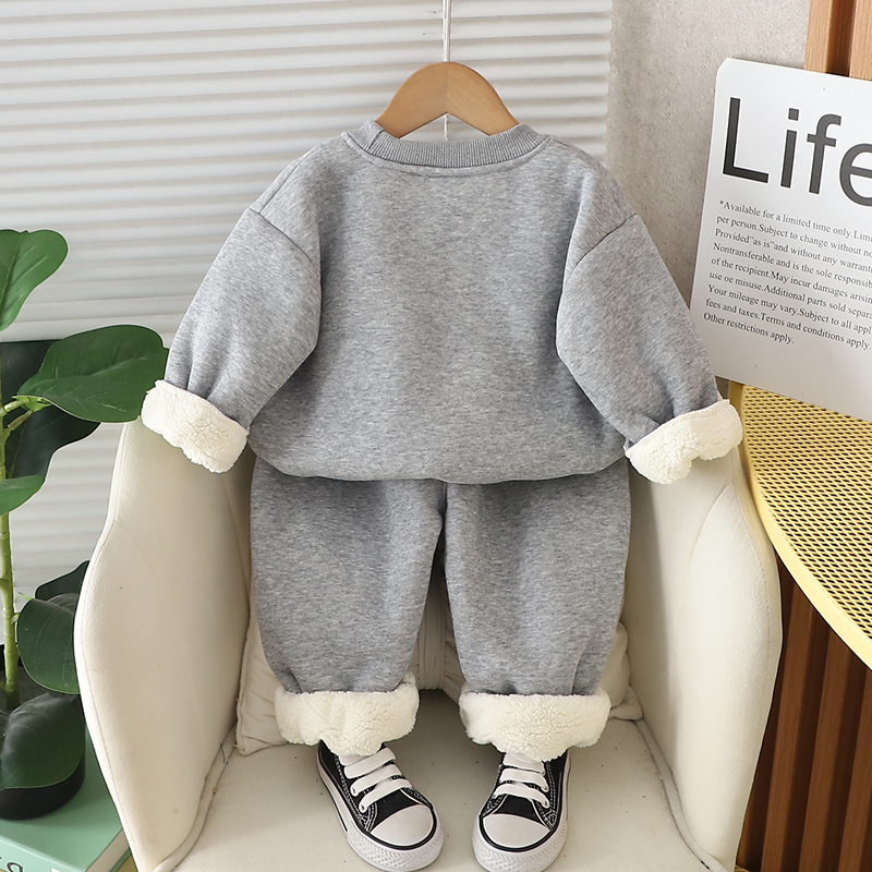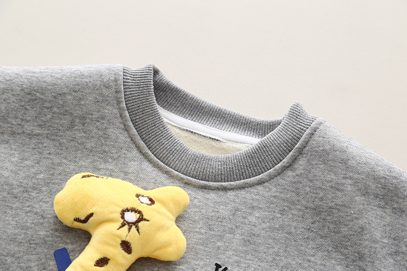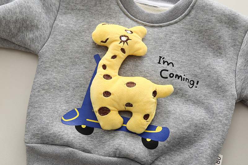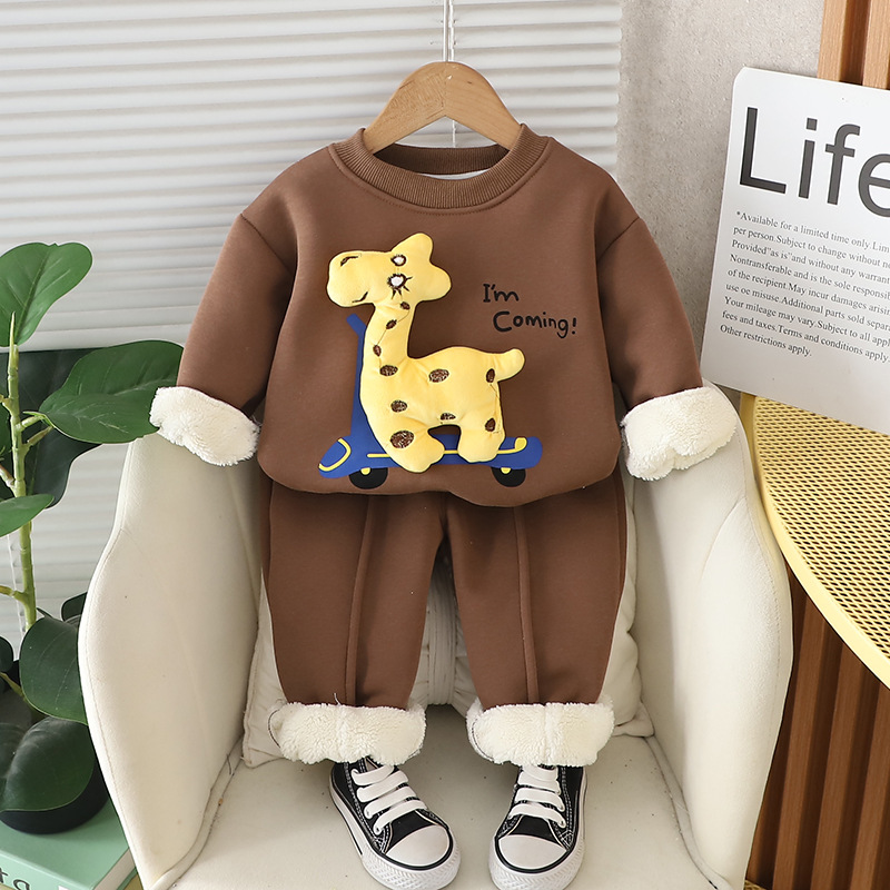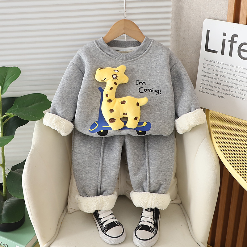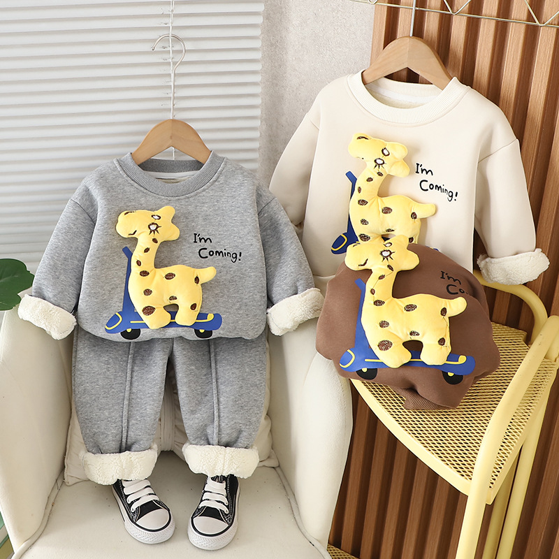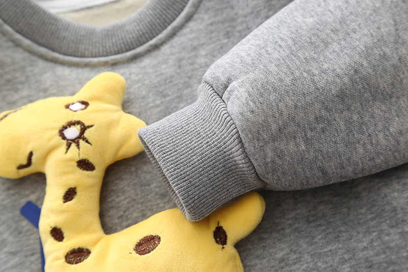 소녀의 겨울 기모 땀 세트 새로운 서양식 겨울 3 차원 기린 기모 두꺼운 긴팔 투피스 세트스토어 가기