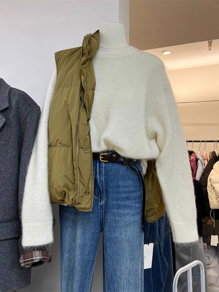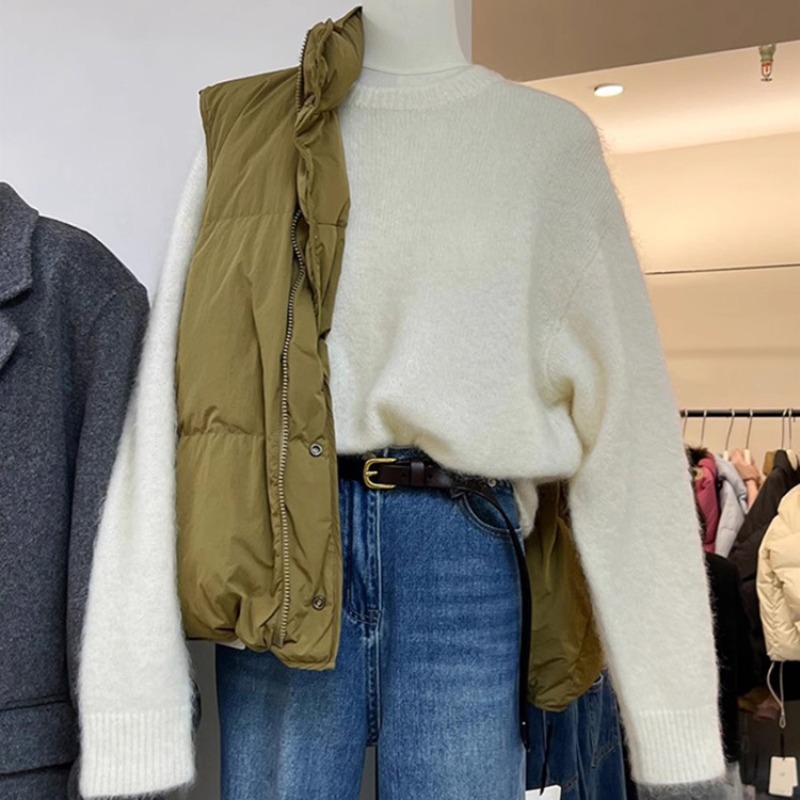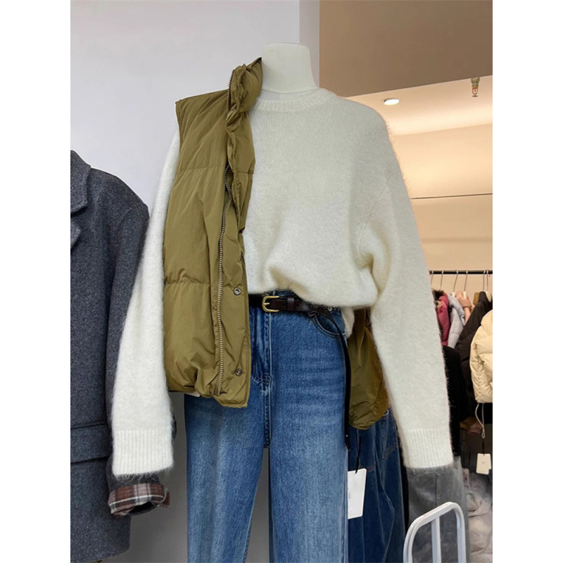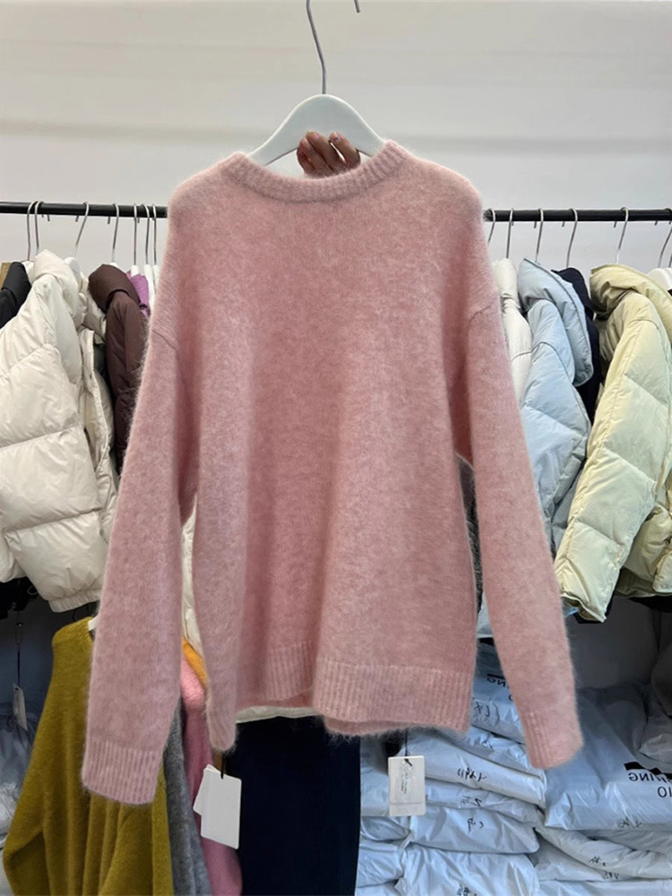 한국의 고급 가을과 겨울 2024 새로운 여성의 부드러운 바람 부드러운 왁스 같은 노란색 캐시미어 스웨터 풀오버 스웨터스토어 가기