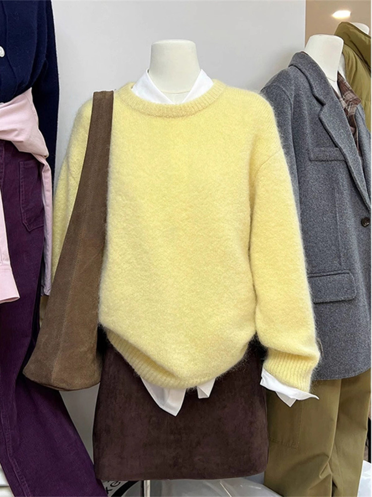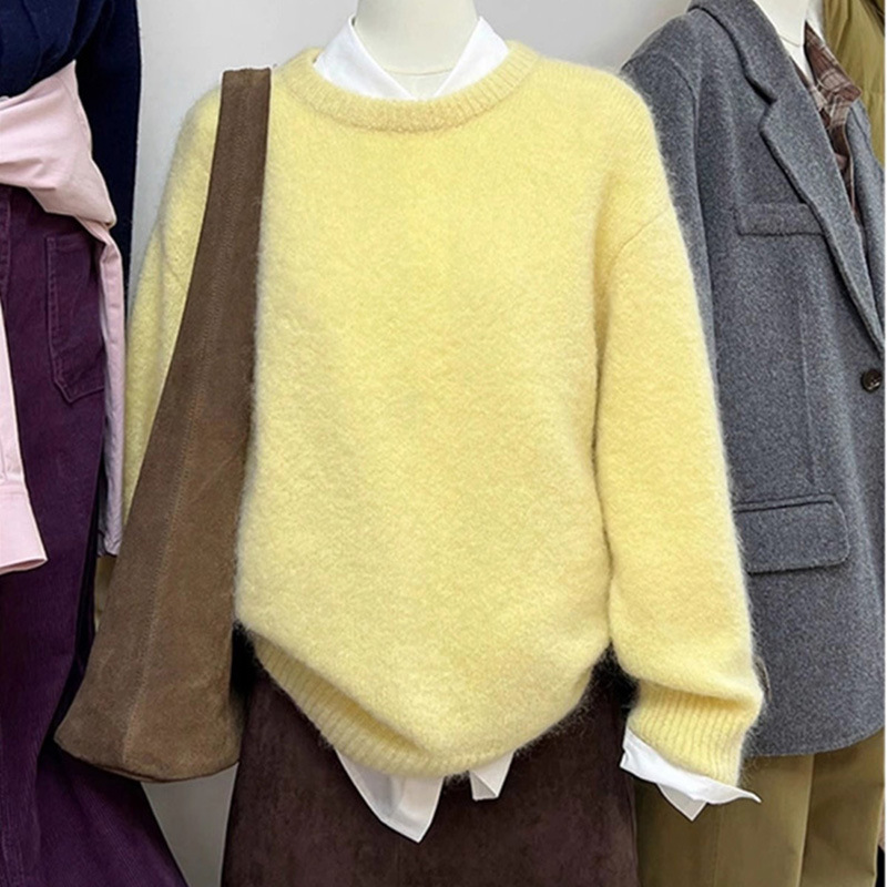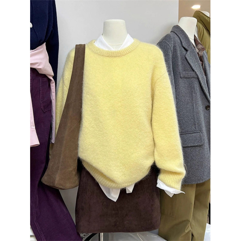 한국의 고급 가을과 겨울 2024 새로운 여성의 부드러운 바람 부드러운 왁스 같은 노란색 캐시미어 스웨터 풀오버 스웨터
