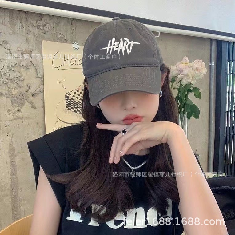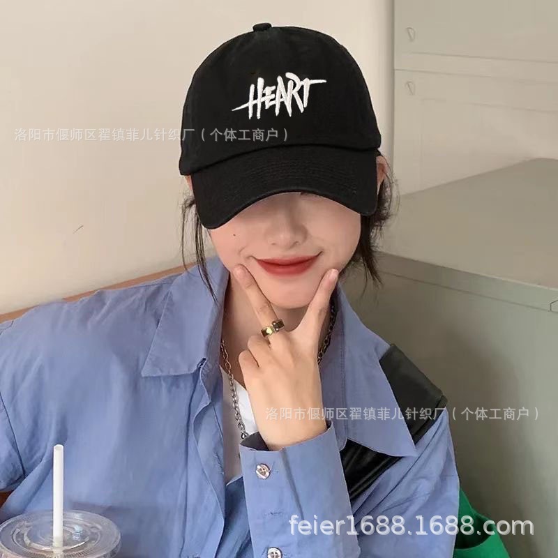 얼굴 한국어 버전 레터 캡 한국 빈티지 자수 올 매치 야구 모자를 보여주는 점 야구 모자 딥 탑 곡선 처마스토어 가기