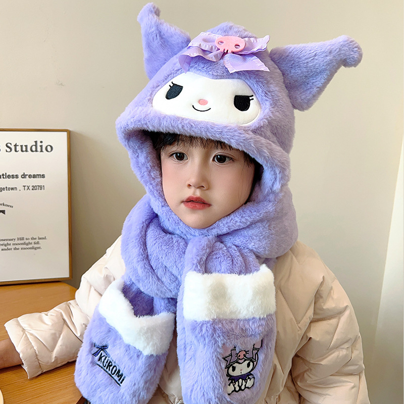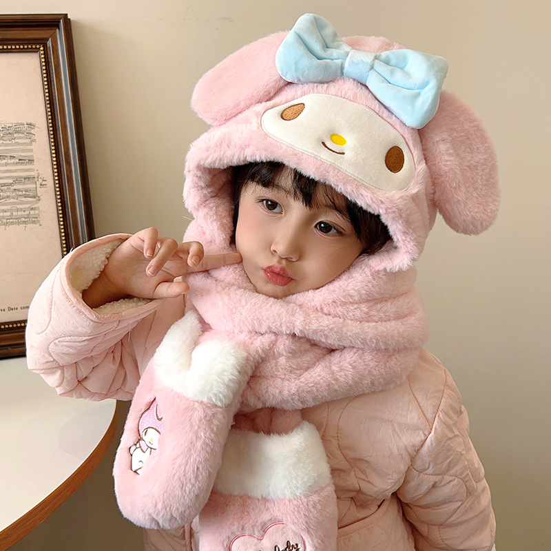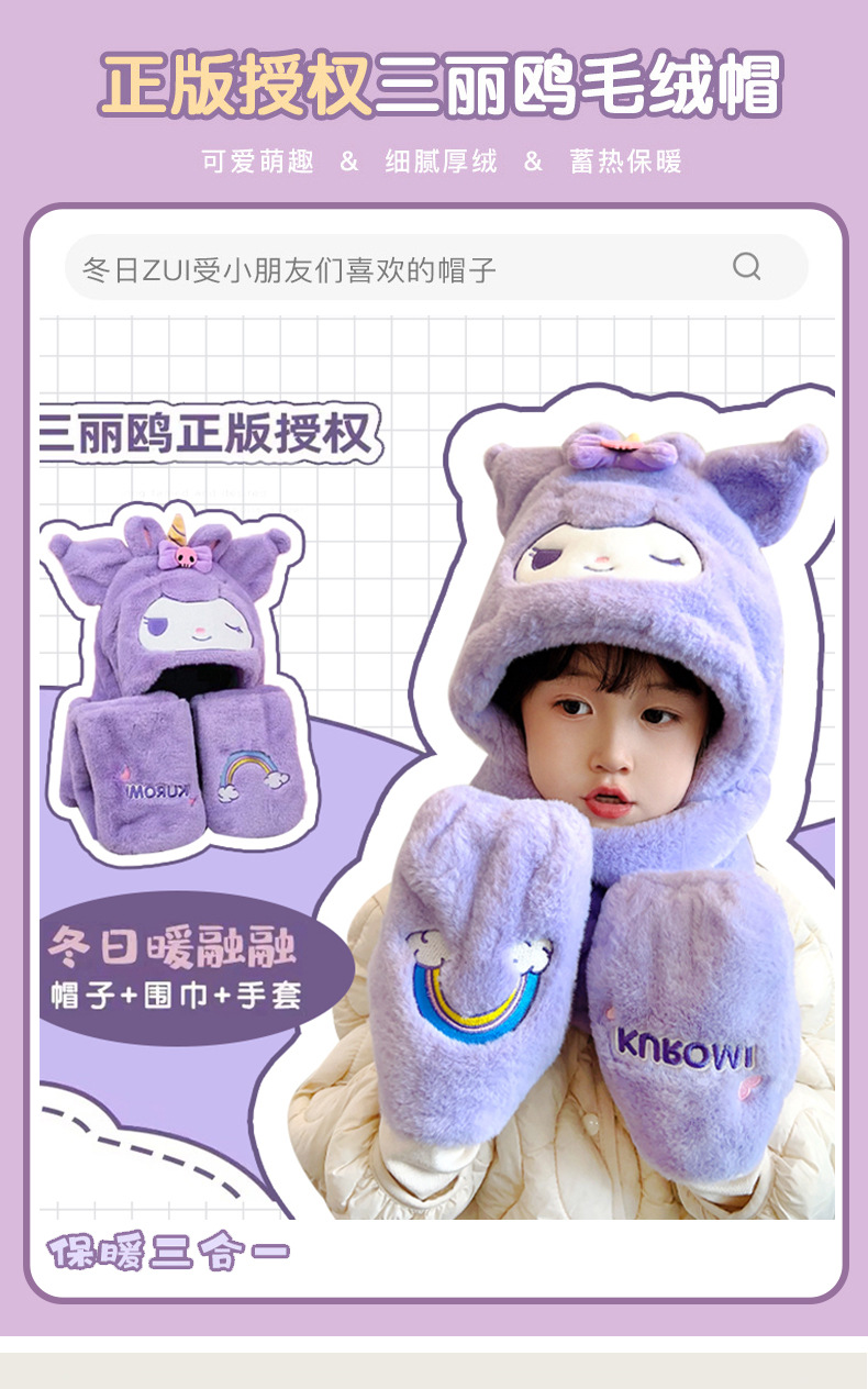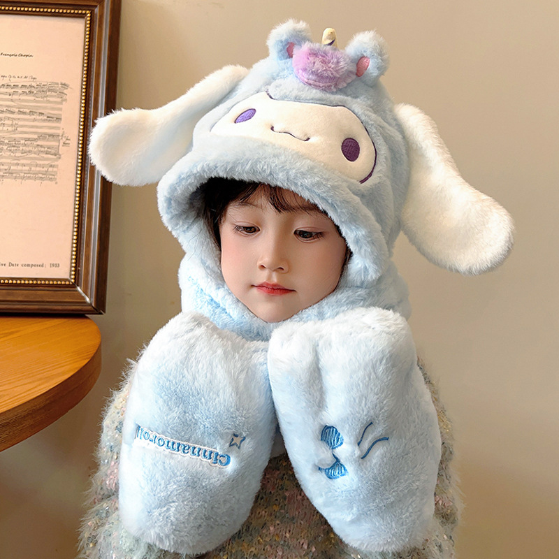 정품 Sanlio Unicorn 어린이 모자 장갑 스카프 3 조각 세트 3 대 1 겨울 스카프 따뜻한 도매스토어 가기