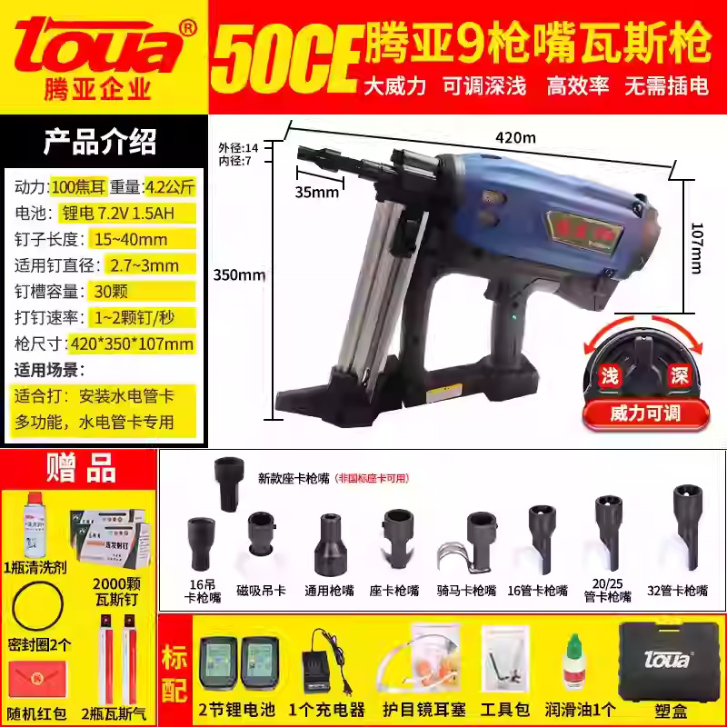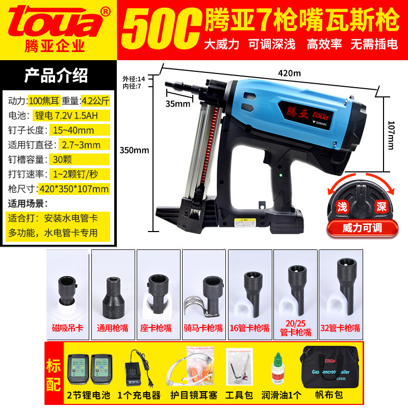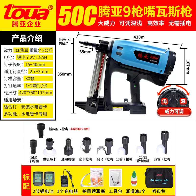 도매 toua Tengya 가스 총 GSN50C40CB 다기능 네일 건 가스 네일 건 스틸 네일 건 콘크리트스토어 가기