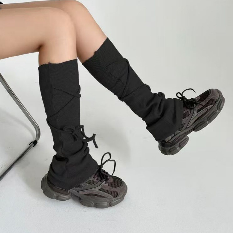 여성용 여성용 jk 종아리 양말 경적 레이스 업 양말 니트 스레드 스트랩 다리 커버 y2k 회색 스트랩 양말스토어 가기