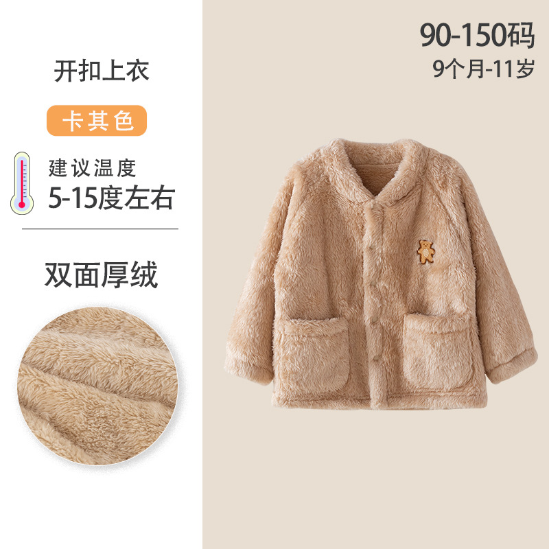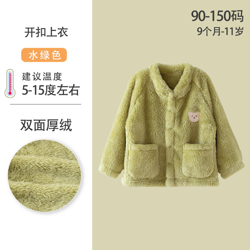어린이 기모 따뜻한 봄과 가을 남자와 여자의 두꺼운 기모 따뜻한 바지 플란넬 겨울 코트 홈 옷 잠옷