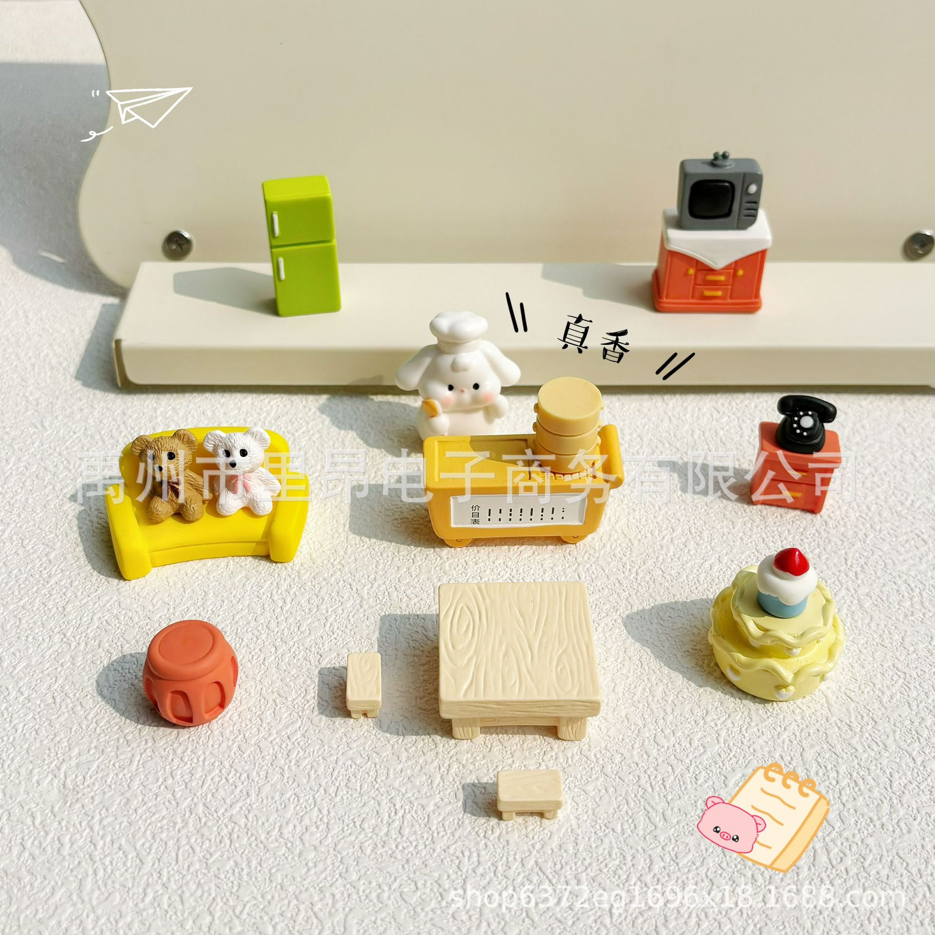 마이크로 풍경 요리사 강아지 아침 식사 자동차 복고풍 TV 기본 기계 크림 접착제 diy 소재 데스크탑 장식품 장식