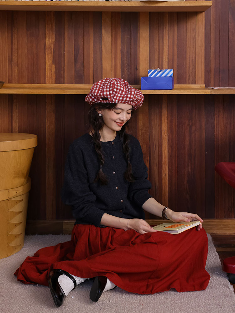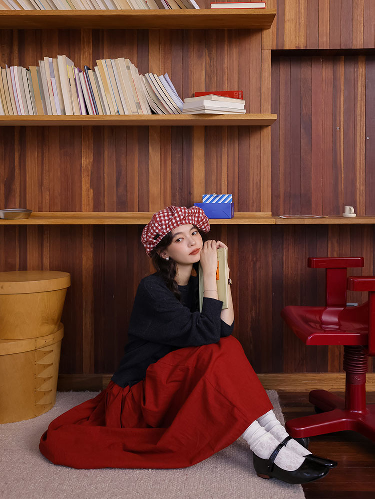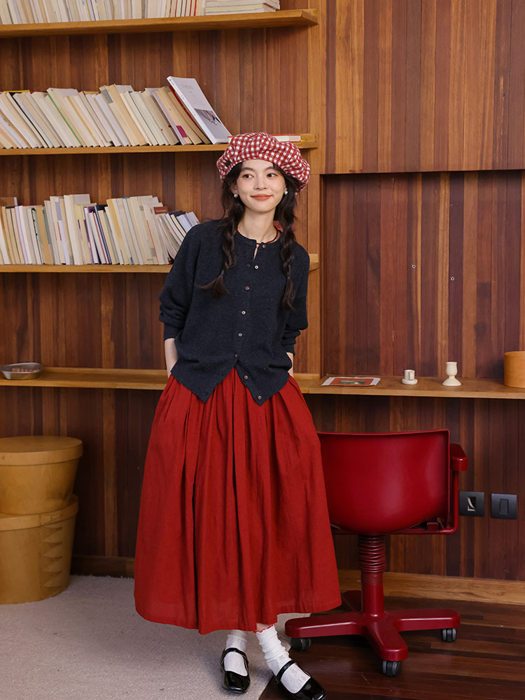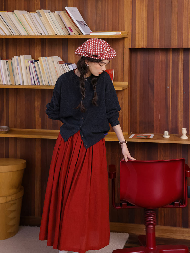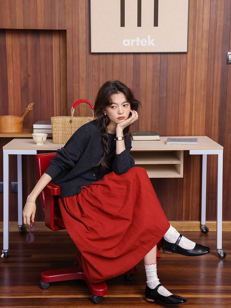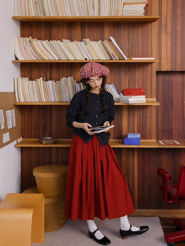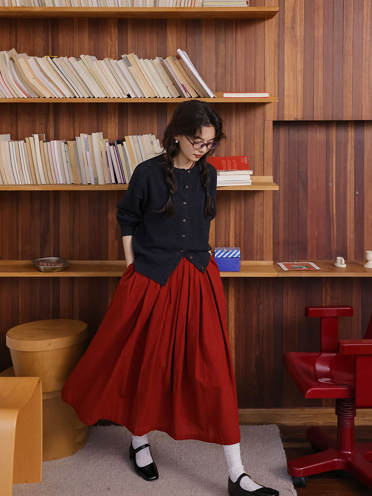 2024 가을과 겨울 새로운 프랑스 복고풍 큰 빨간 높은 허리 슬림 패션 주름 치마 긴 우산 치마 여성스토어 가기
