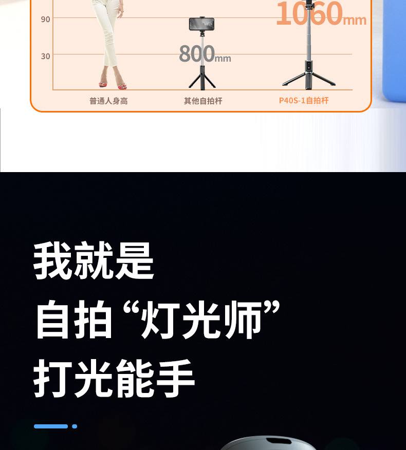 P40S手机支架自拍杆防抖伸缩神器便携旅游三脚架带灯自拍手机支架P40S手机支架自拍杆防抖伸缩神器便携旅游三脚架带灯自拍手机支架P40S手机