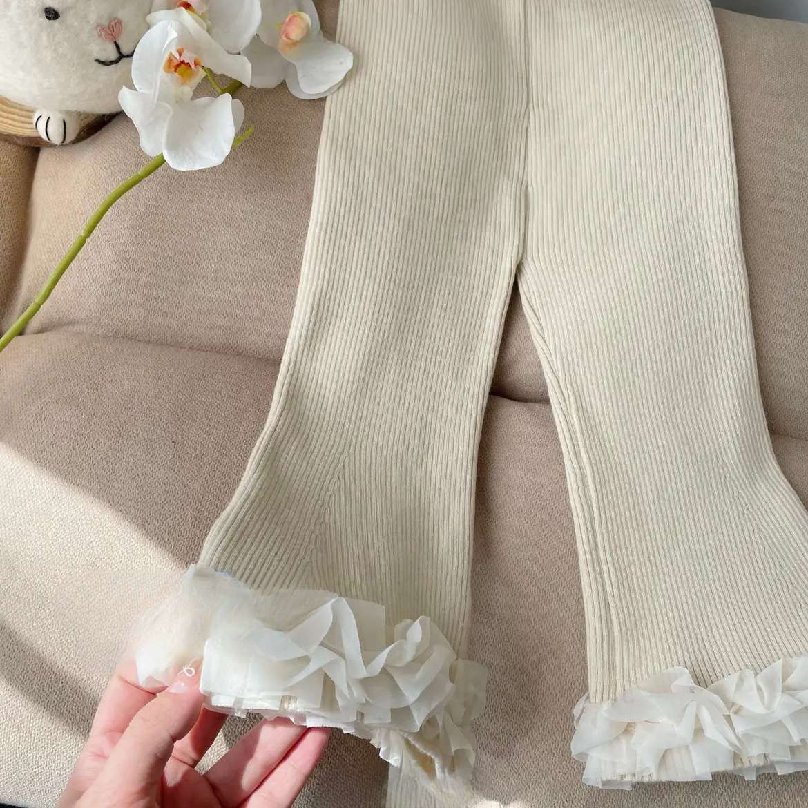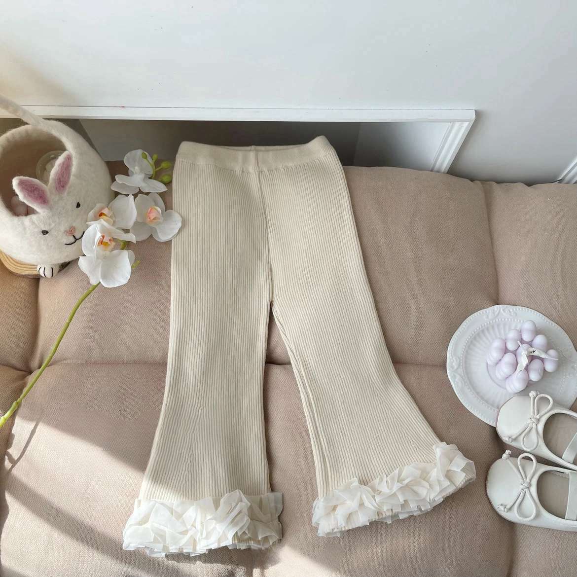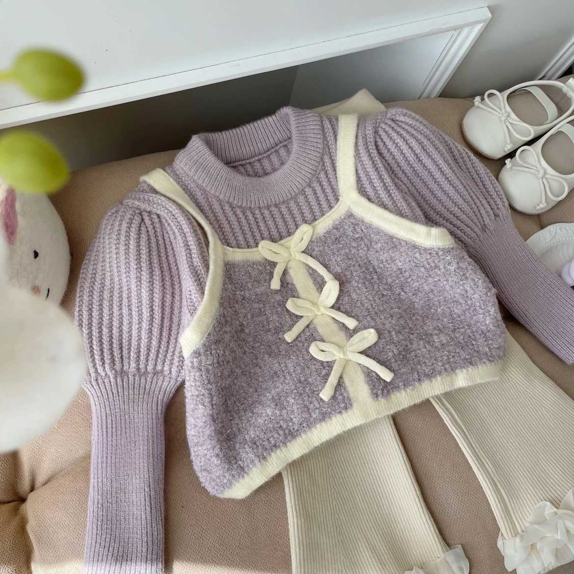 여아 가을 겨울 세트 2025 신상 한국 스타일 여아 투피스 두꺼운 스웨터와 플레어 팬츠 세트