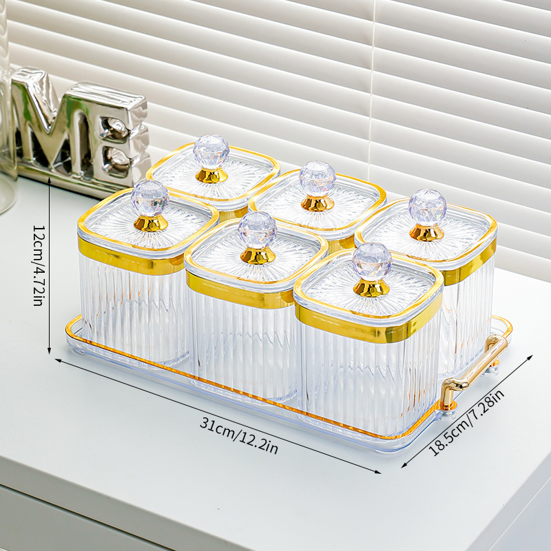 • 6칸 접시가 있는 투명한 사각형 캔 - 대형 다이아몬드 손잡이