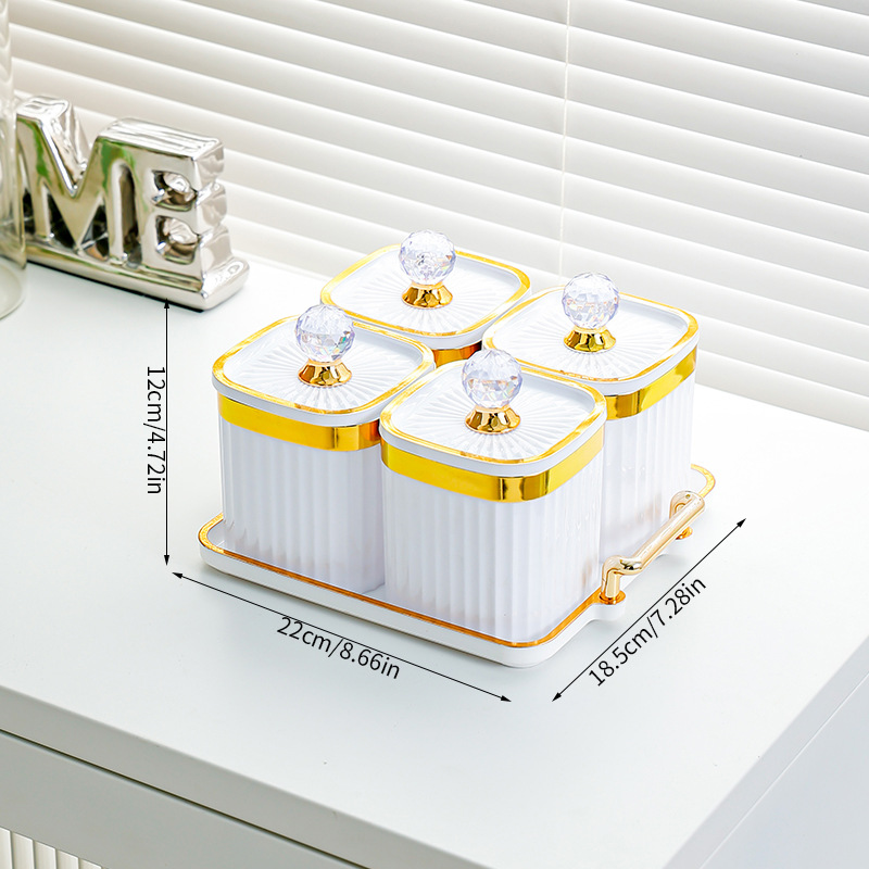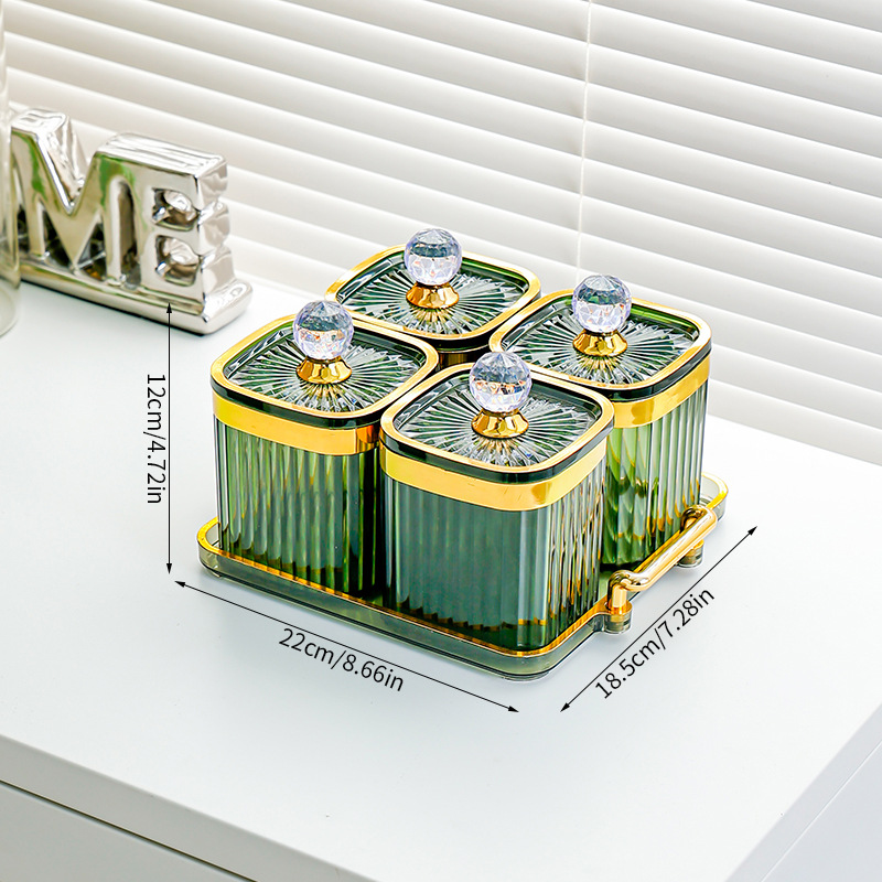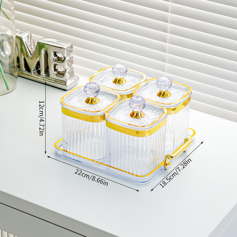 • 4칸 접시가 있는 투명한 사각형 캔 - 대형 다이아몬드 손잡이