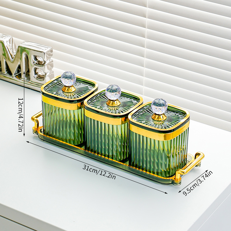 • 투명 사각병 3칸 트레이 - 대형 다이아몬드 손잡이