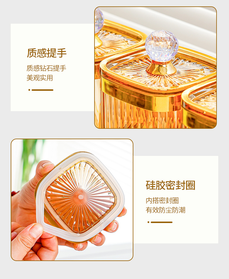 • 호박색 사각 항아리 6격판 - 대형 다이아몬드 손잡이
